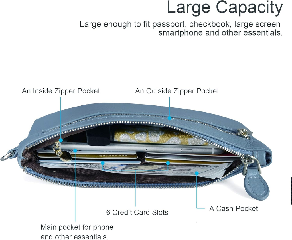 Featuring multiple card slots, compartments, and a zippered pocket, it provides ample space for your cash, coins, and phone. The detachable wrist strap ensures easy carrying, whether used as a wallet, clutch, or mini handbag. The durable stitching and smooth zipper add a touch of sophistication while ensuring long-lasting use.