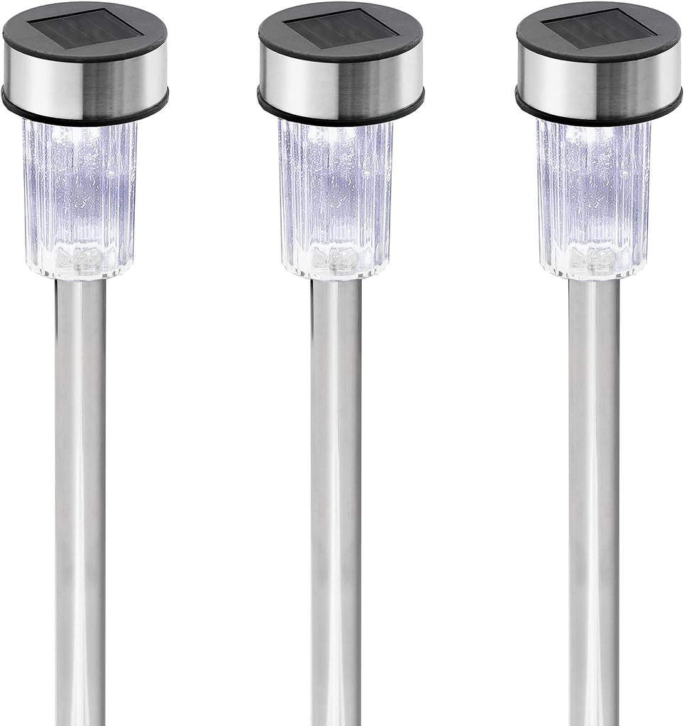 Brighten your lawn and pathways with this 10-pack of solar-powered garden lights. Featuring waterproof construction and stainless steel stakes, these LED lights offer auto on/off functionality and reliable outdoor lighting with minimal maintenance.