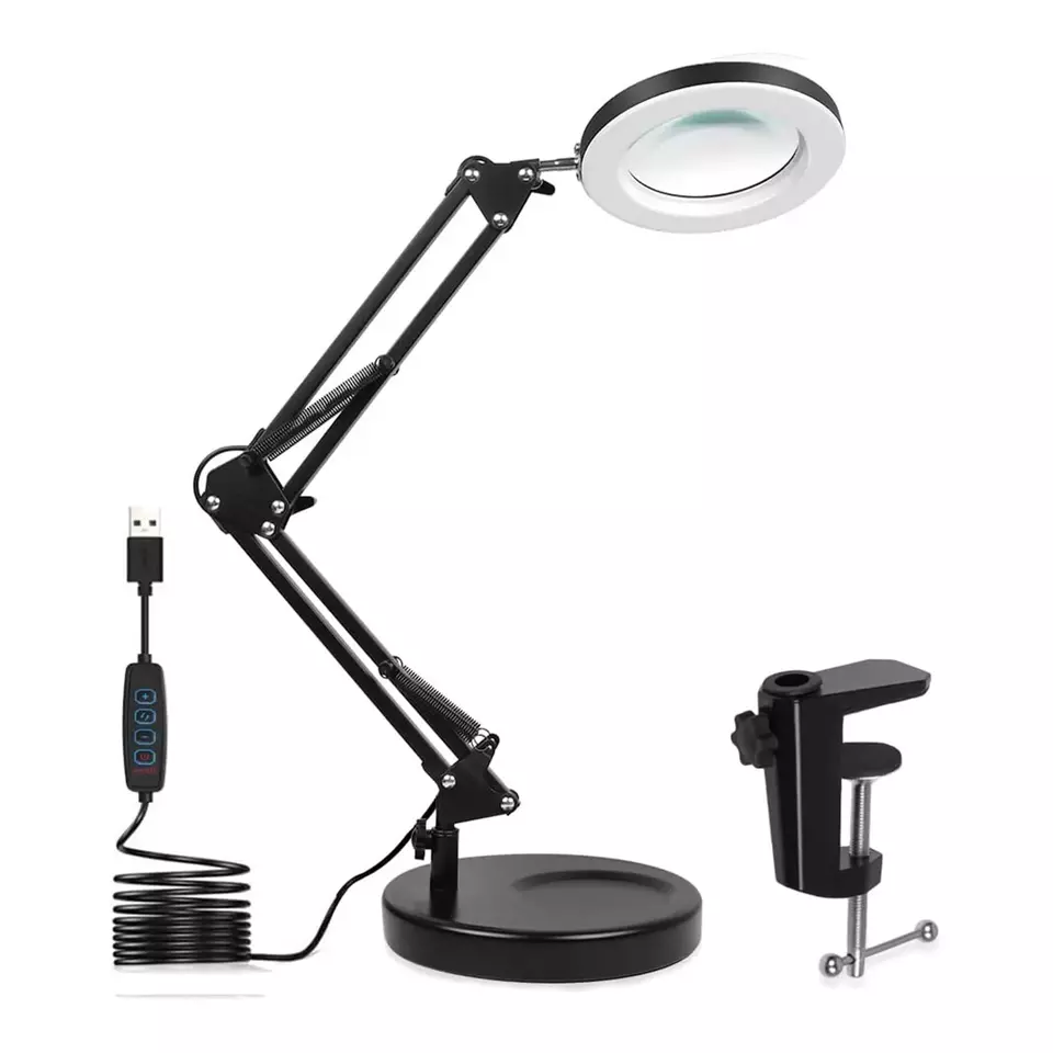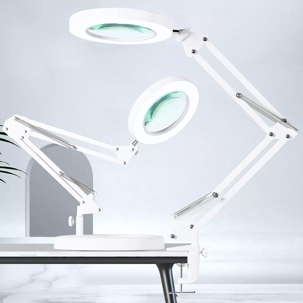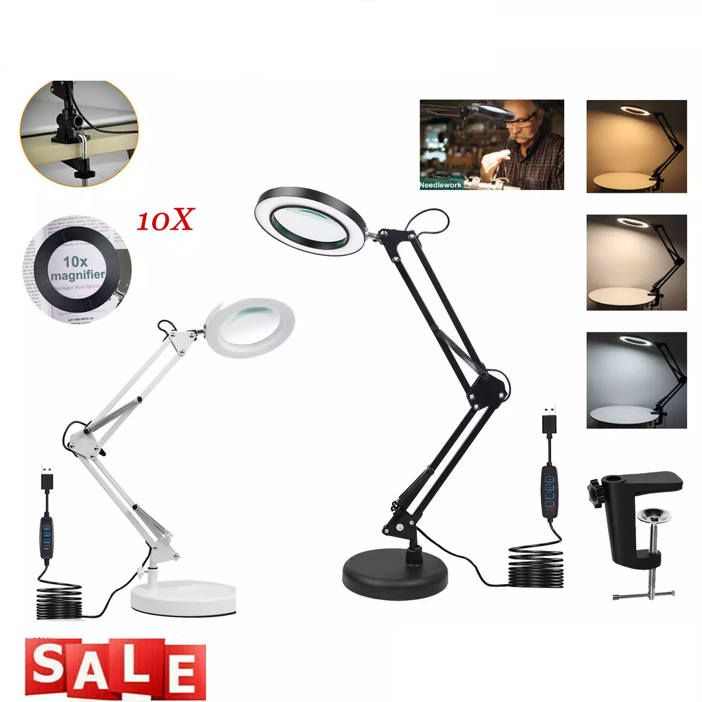 The 10X Magnifying Glass Desk Light Magnifier LED Lamp is the ultimate solution for precision tasks, reading, and crafting. Designed with a modern aesthetic, this versatile lamp features a 10X magnification lens that ensures clarity and detail, making it perfect for close-up work. The adjustable and flexible arm provides ease of positioning, while the 3-light settings (Clear White, Warm White, and White) allow for customizable lighting. The lamp is energy-efficient, USB-powered, and comes with both a stable base and a clamp option, making it suitable for any workspace or room. With dimmable brightness, colour-changing capabilities, and push-button control, this lamp enhances your experience with both functionality and style.
