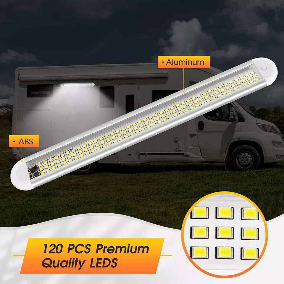 The 120LED Car Interior Light Strip is a versatile 12V/24V LED tube designed to provide bright, energy-efficient lighting for your van, caravan, or boat. With a convenient ON/OFF switch, it allows for easy control of your interior lighting without complicated installations. This flexible LED strip offers uniform, high-quality illumination that’s perfect for creating an ambient atmosphere in your vehicle, whether for relaxation, visibility, or reading. Built for durability and energy efficiency, the light strip is suitable for both indoor and outdoor use, offering a reliable, waterproof solution for all your vehicle lighting needs.