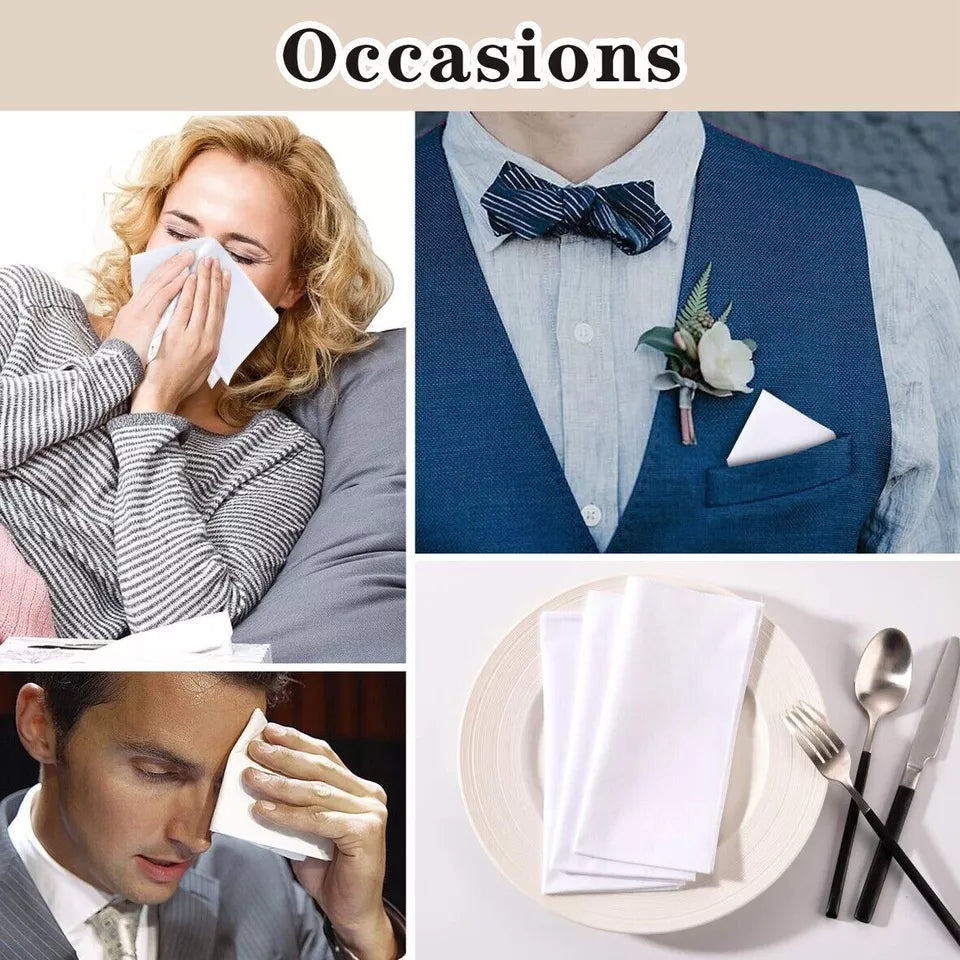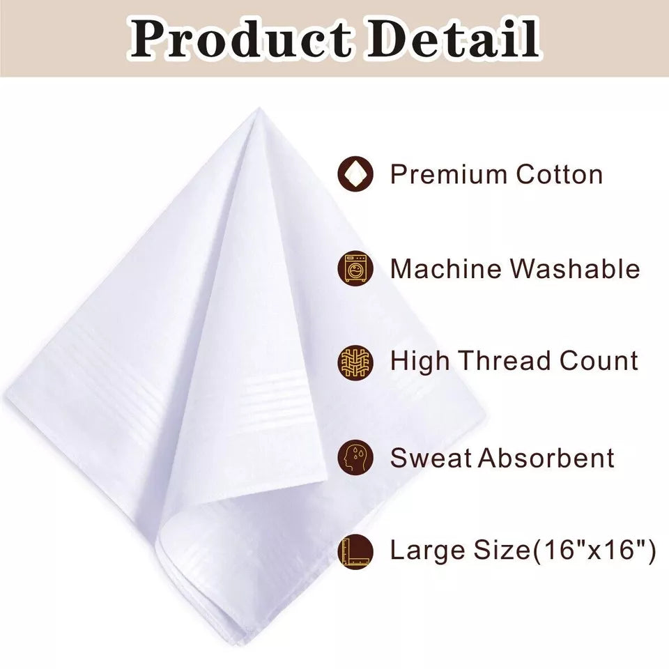 12PCS Men's Large White Square Handkerchiefs – Soft Cotton Hankies