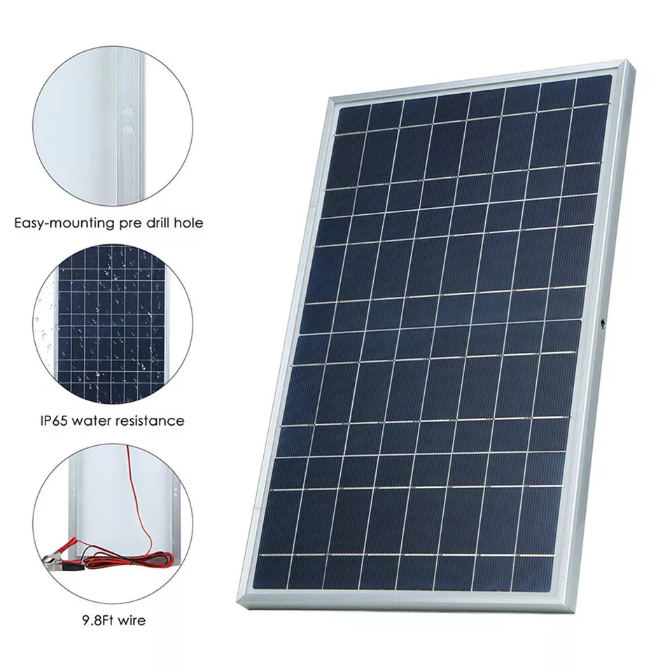 This monocrystalline/polycrystalline solar panel is built with high-efficiency solar cells, ensuring maximum power conversion even in low-light conditions. It provides a steady 12V output, making it suitable for battery charging, small appliances, and off-grid power systems.