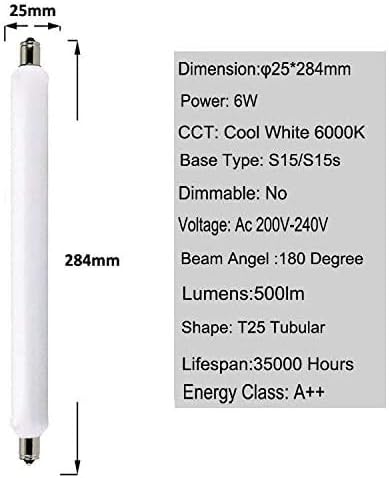 2 × 6W S15s LED Tubular Light Bulbs (284mm length)