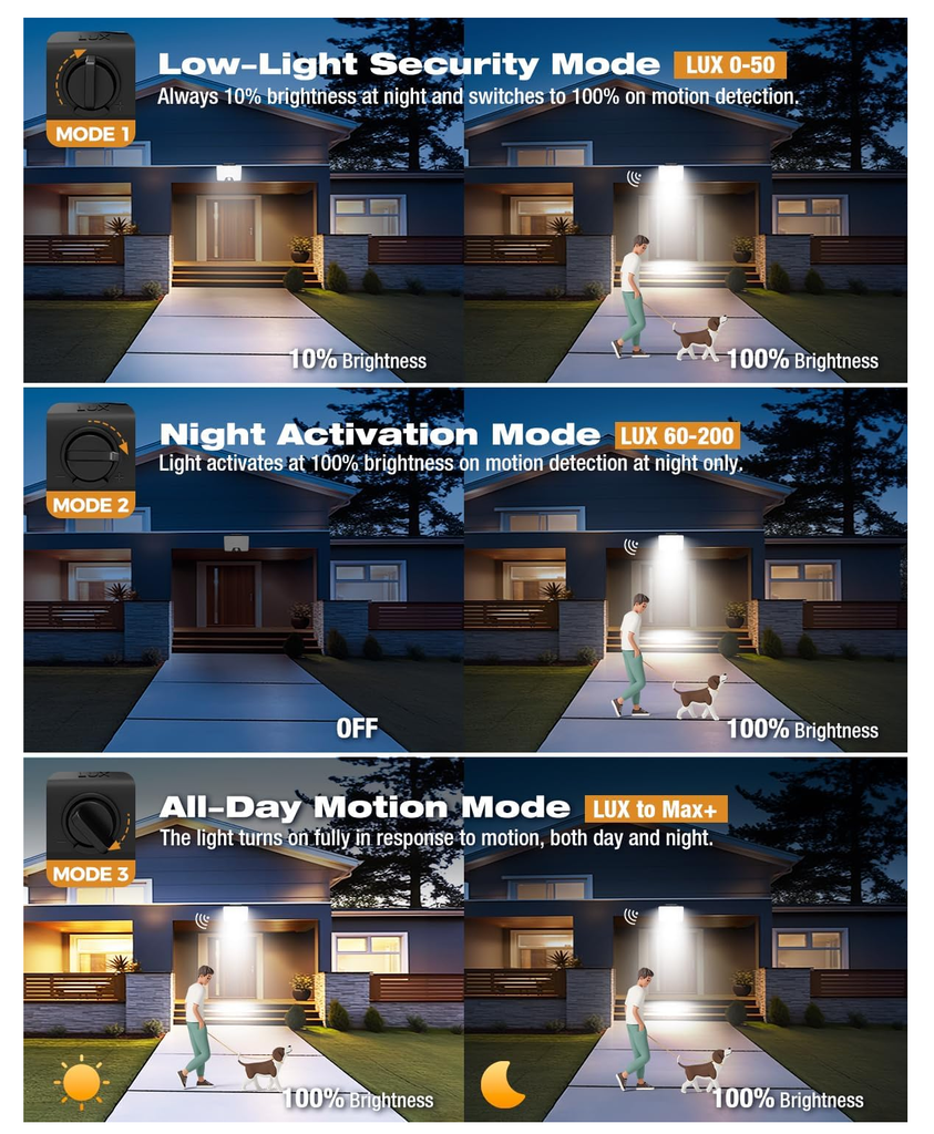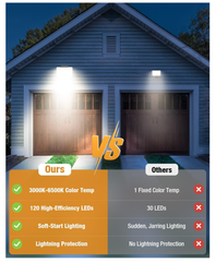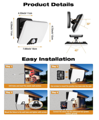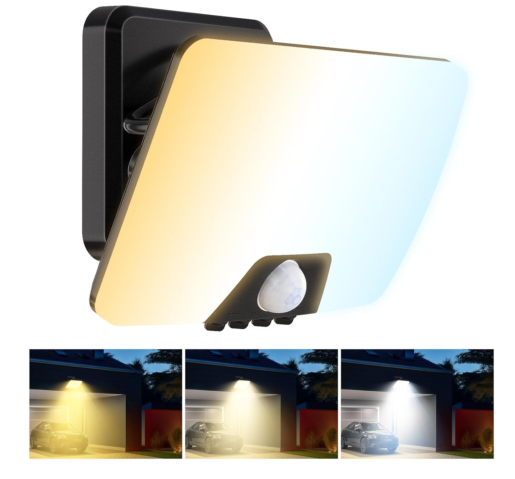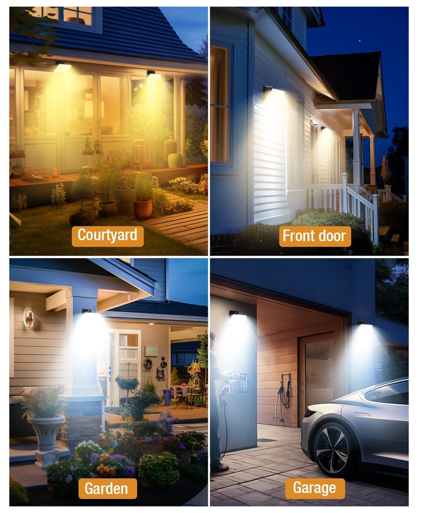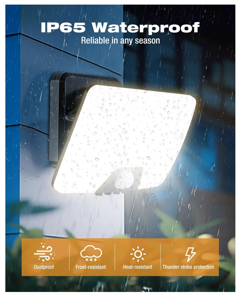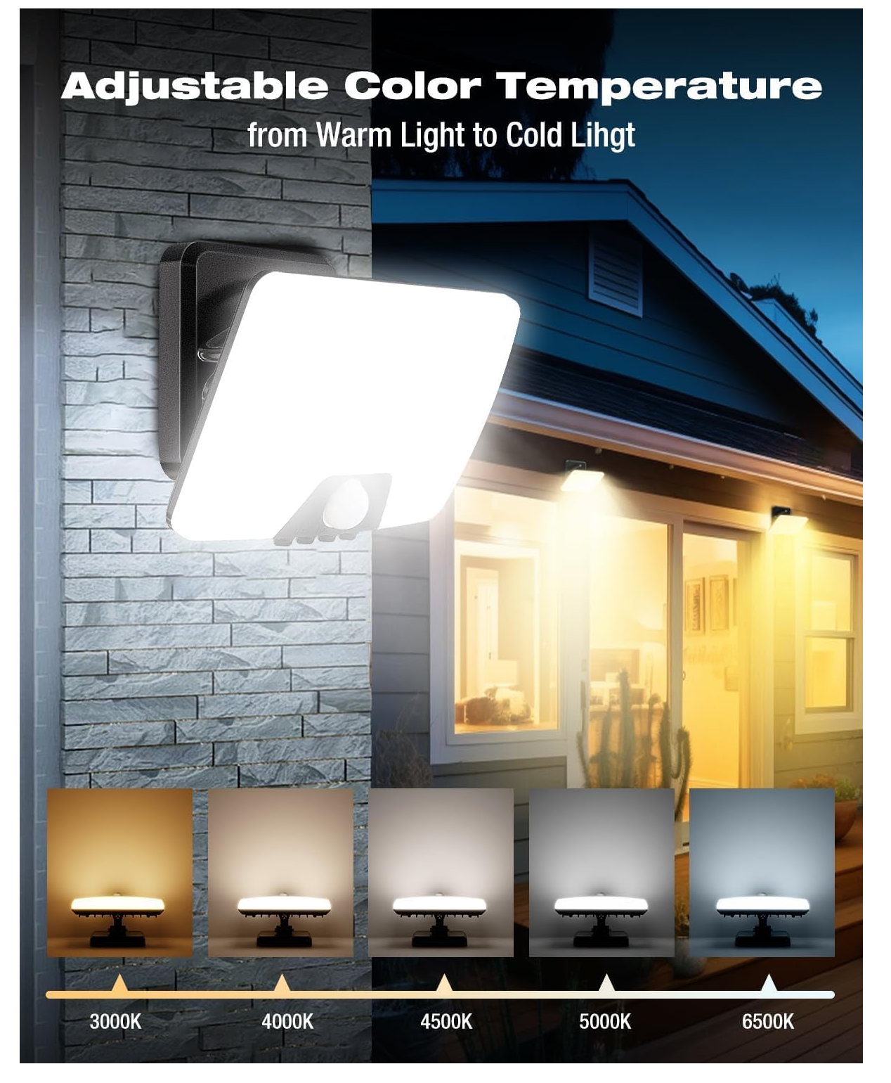 Enhance your outdoor security with the 24W PIR Motion Sensor Security Light. This wall-mounted light delivers a powerful 2200 lumens with adjustable color temperature from 3000K to 6500K across five modes. Built from high-density ABS and rated IP65 waterproof, it offers dependable performance in any weather. The motion sensor detects activity within 1 to 8 meters and across a 180° angle, making it perfect for gardens, garages, and driveways.