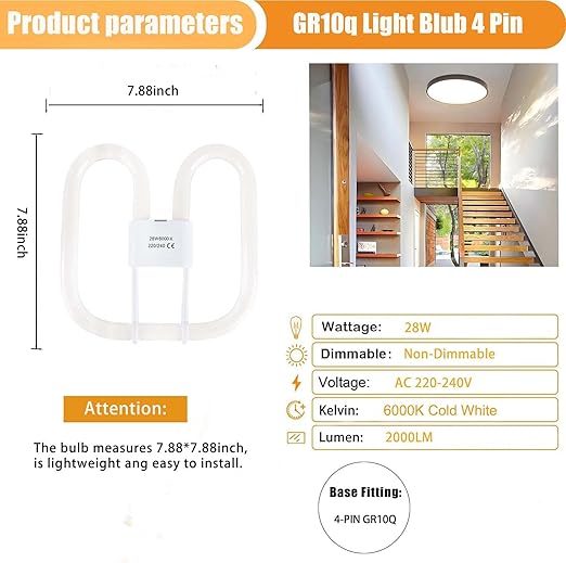 Easy Installation: The GR10q 4-Pin fitting ensures compatibility with many ceiling light fixtures. Simply insert the bulb into the socket, and you’re ready to go.