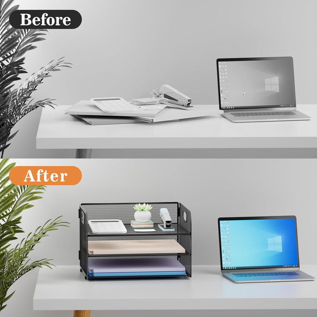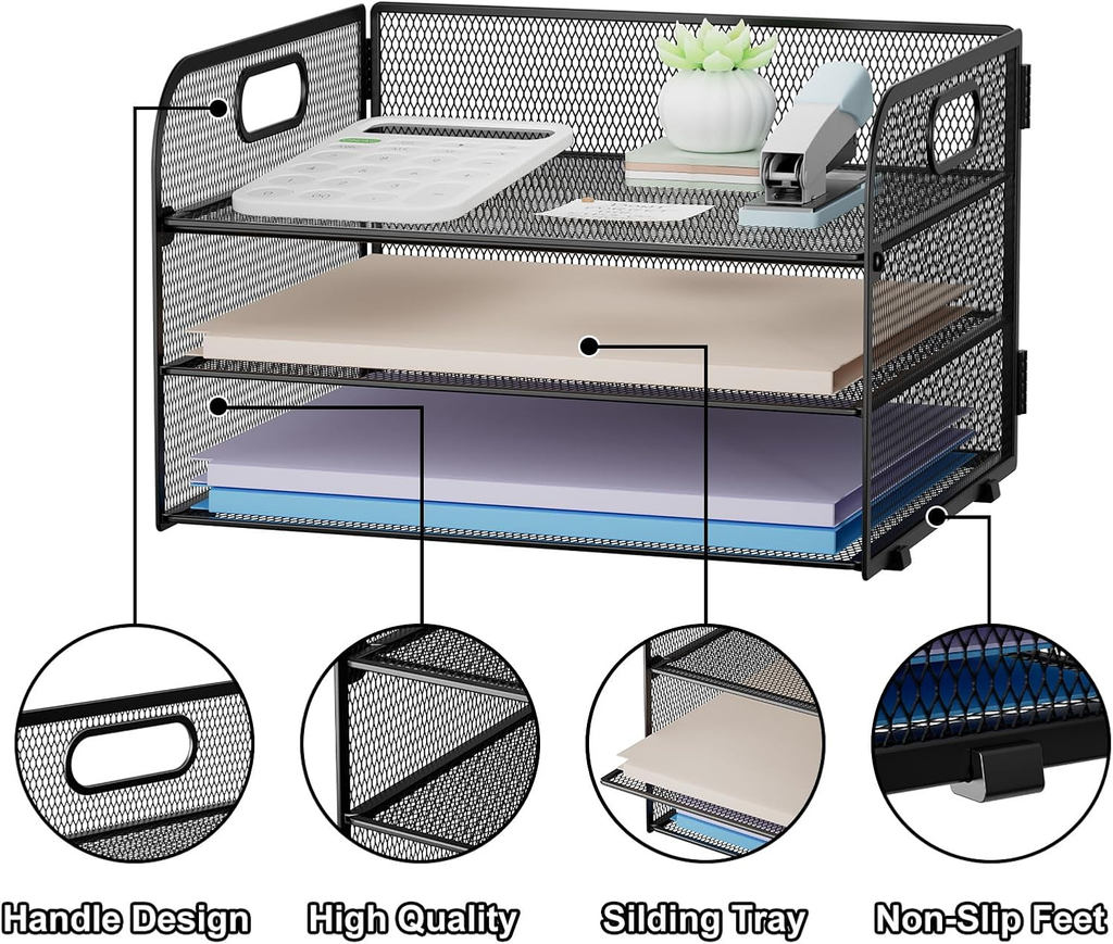 3 Spacious Trays: Ideal for sorting papers, folders, and mail.