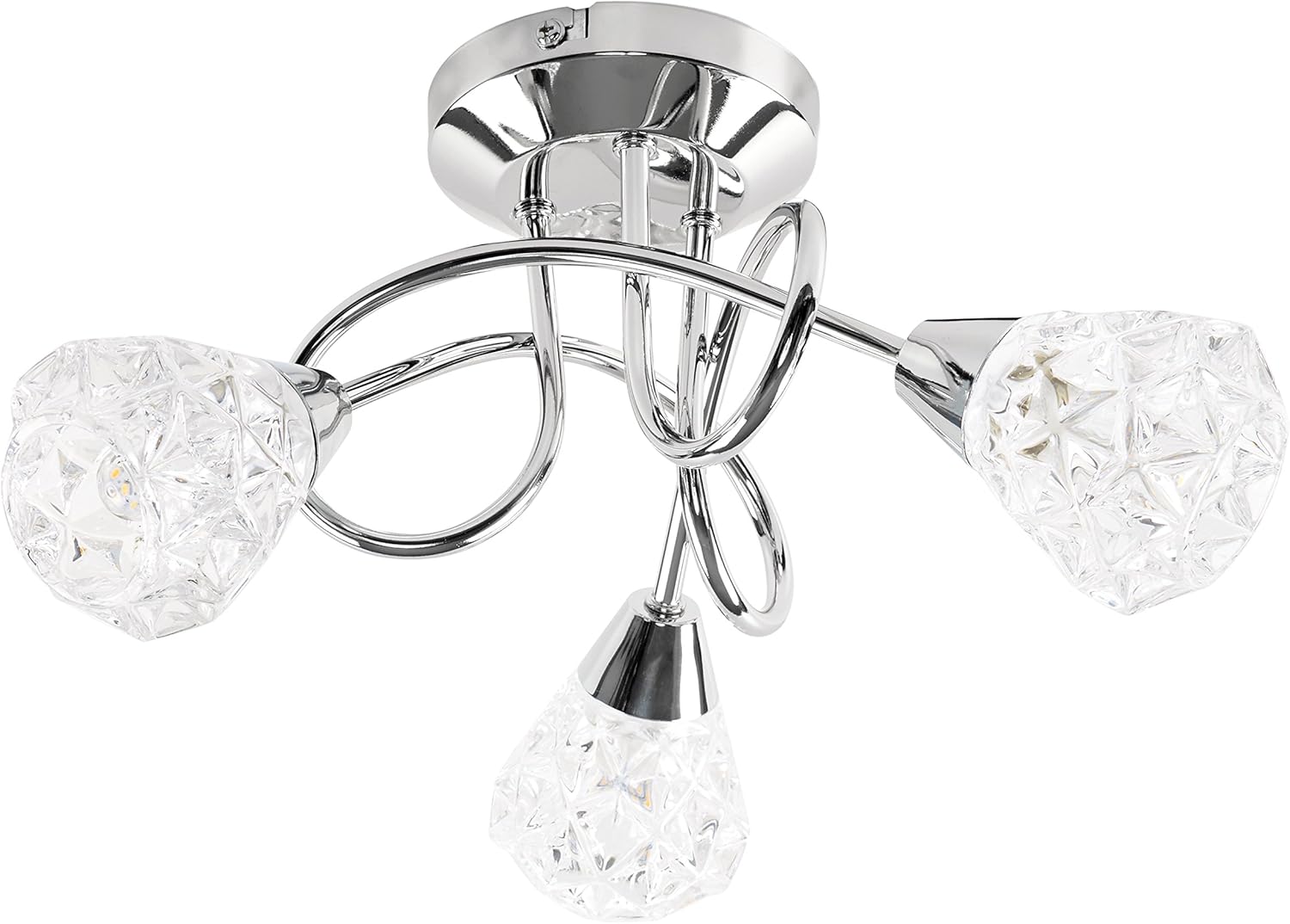 Add a touch of elegance to any room with the Modern 3 Way Crossover Ceiling Light in Silver Chrome. Featuring a sleek, contemporary crossover design and stunning diamond effect glass shades, this ceiling pendant light delivers both functionality and luxury. Ideal for use in living rooms, bedrooms, hallways, or dining spaces, this stylish ceiling light blends effortlessly into any modern home décor. The triple light design ensures optimal illumination, making your space feel bright and welcoming. Crafted for lasting performance and visual appeal, this chrome ceiling light fitting is a must-have home improvement essential.