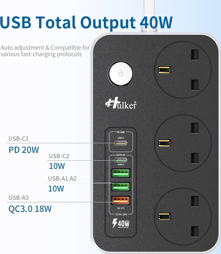 • Type: Multi Plug Extension Lead with USB-C
