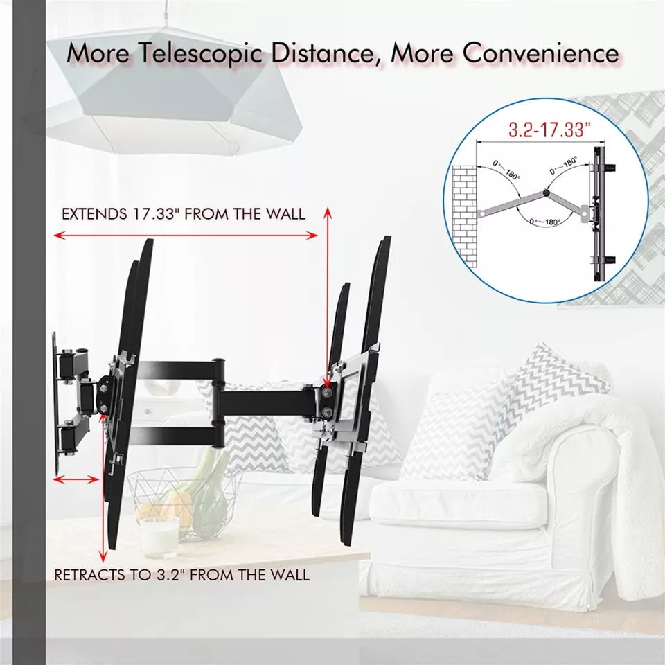 With a lightweight yet strong design, this mount is easy to install, making it a hassle-free solution for mounting your LCD, LED, or Plasma TV. The full-motion swing arm allows you to extend, tilt, and rotate your screen, making it perfect for corner installations or tight spaces.