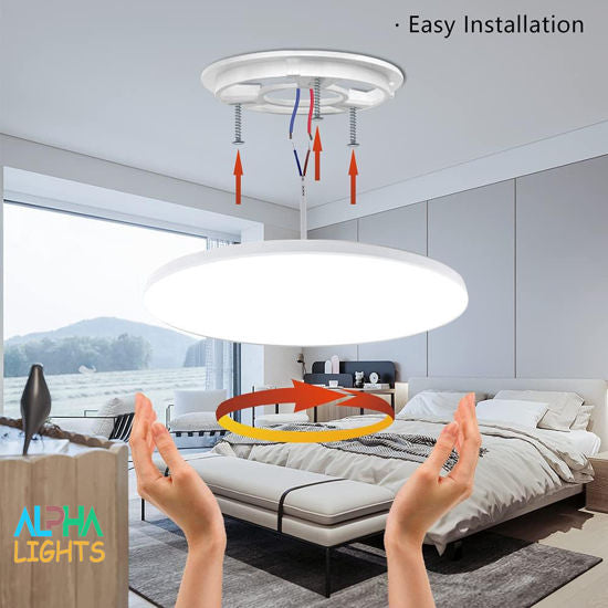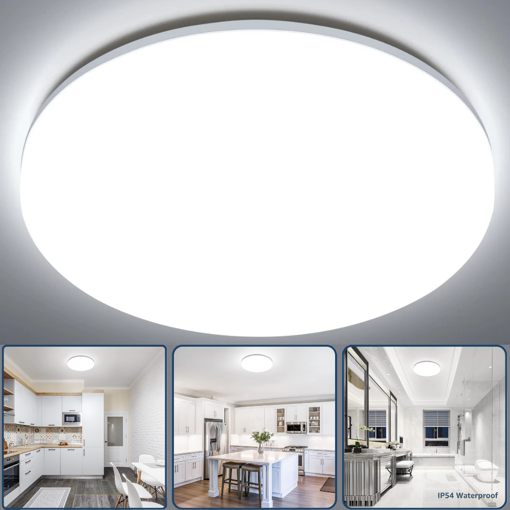 36W Modern Flush Ceiling lights, perfect for modern indoor lighting. With a sleek white finish, 230mm diameter, and slim 40mm profile, it blends effortlessly into any room. Emitting a crisp 6000K cool daylight.