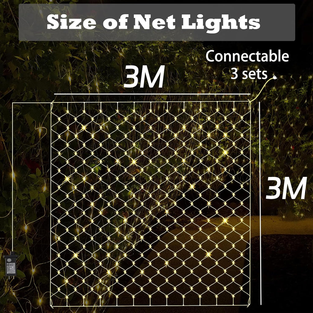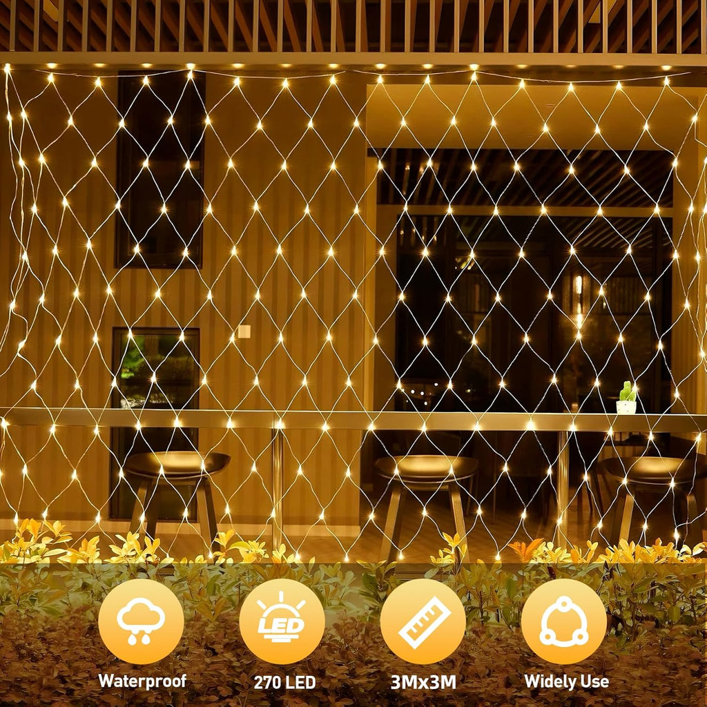 Create a stunning backdrop of warm white light with these 3m x 3m LED Net Fairy Lights. Featuring 270 LEDs and 8 dazzling modes, these mesh lights are perfect for decorating gardens, fences, bushes, patios, and event spaces. Waterproof, connectable, and energy-efficient, they're the perfect choice for weddings, Christmas, and outdoor celebrations.