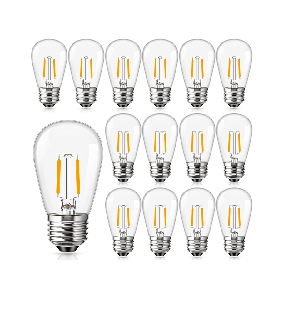 • Eco-friendly & Energy Saving】Festoon lights outdoor include 15 x 2W E27 S14 LED plastic bulbs.