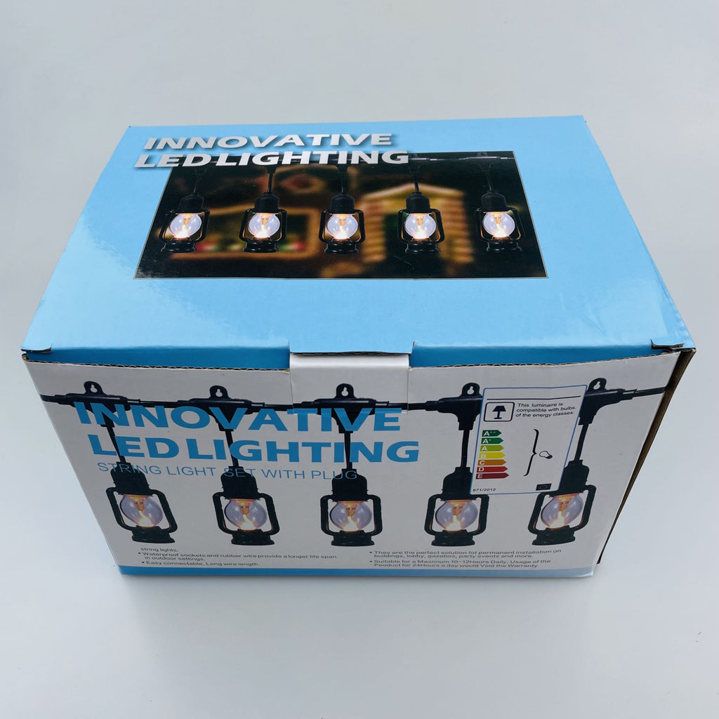 Create a cozy atmosphere with the 5M Outdoor Lantern Festoon Lights, featuring 10 Edison bulbs with a flame effect. Emitting a 3000K warm white light, these lights are perfect for patios, gardens, and evening events. Their lantern design adds a rustic charm to any outdoor space.