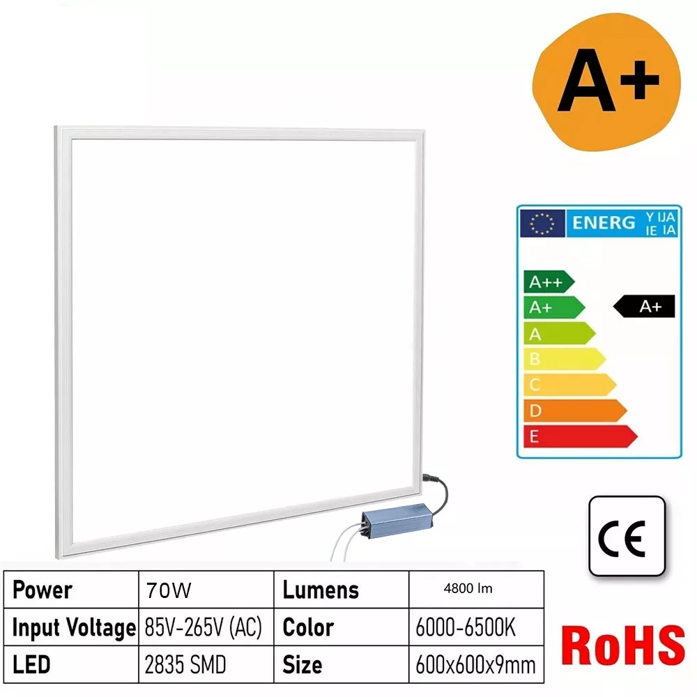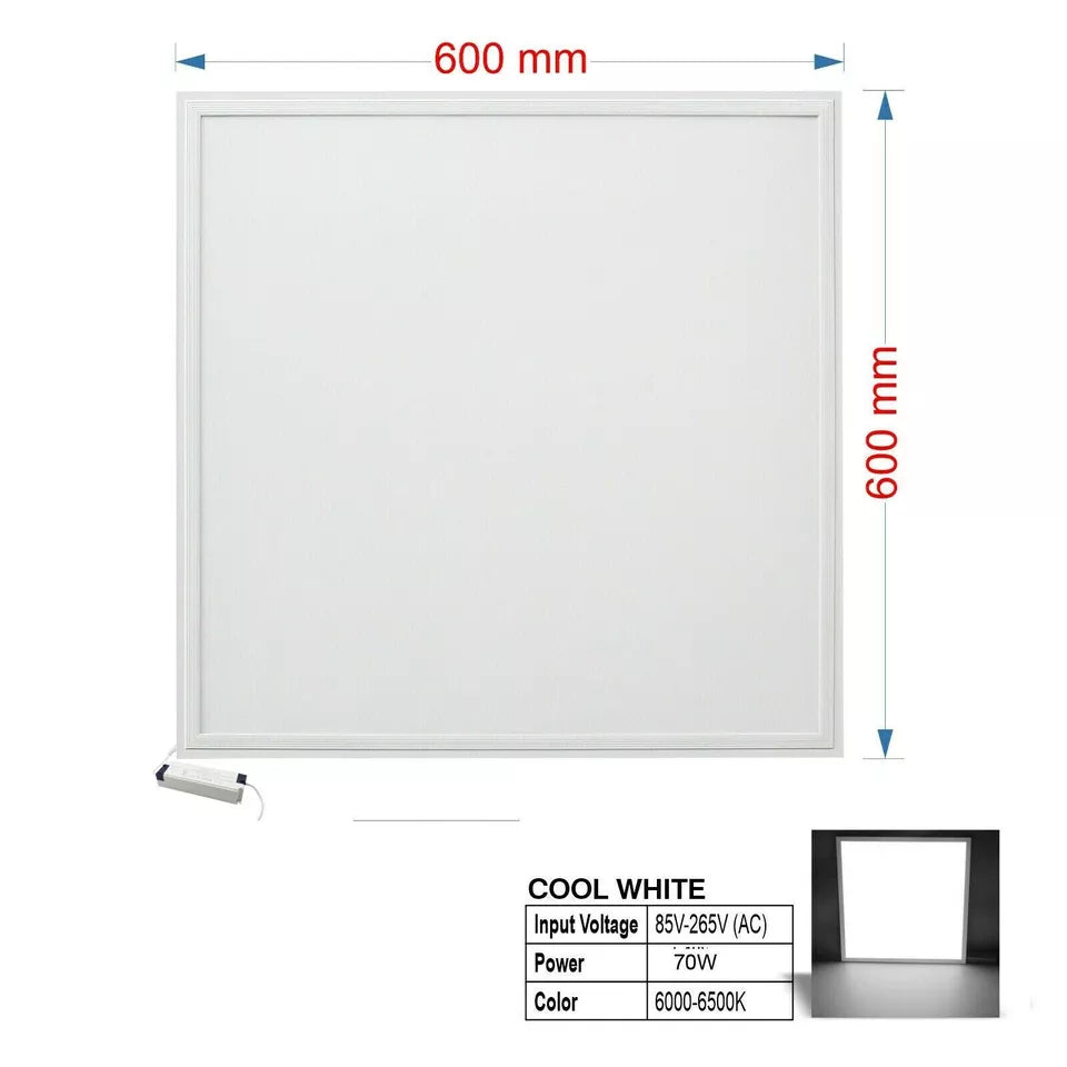 The 70W LED Recessed Ceiling Light is a modern, energy-efficient lighting solution designed to illuminate any indoor space with bright and consistent light. Its sleek, 600x600mm square design seamlessly integrates into ceilings, making it an ideal choice for both residential and commercial settings. The 6500K cool white light provides a clean and crisp illumination that enhances visibility and adds a contemporary feel to any room. With its high lumens output of 4800 LM, this flat panel light delivers excellent brightness while consuming minimal energy, earning it an A+++ energy efficiency rating.