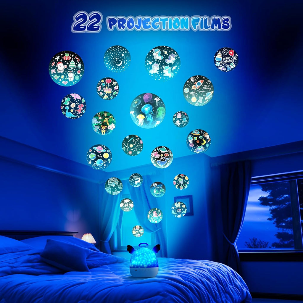 Transform your child’s bedroom into a magical wonderland with our Multi-Function Starry Sky Night Light Projector. This beautifully designed and lightweight baby night light is more than just a lighting device—it’s a gateway to a dreamscape of stars, oceans, and fairy tales. Designed with both fun and function in mind, it features 22 unique projection slides and 88 lighting modes, offering an immersive visual experience that will fascinate and comfort your little one as they drift off to sleep.