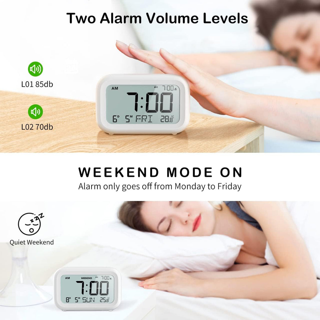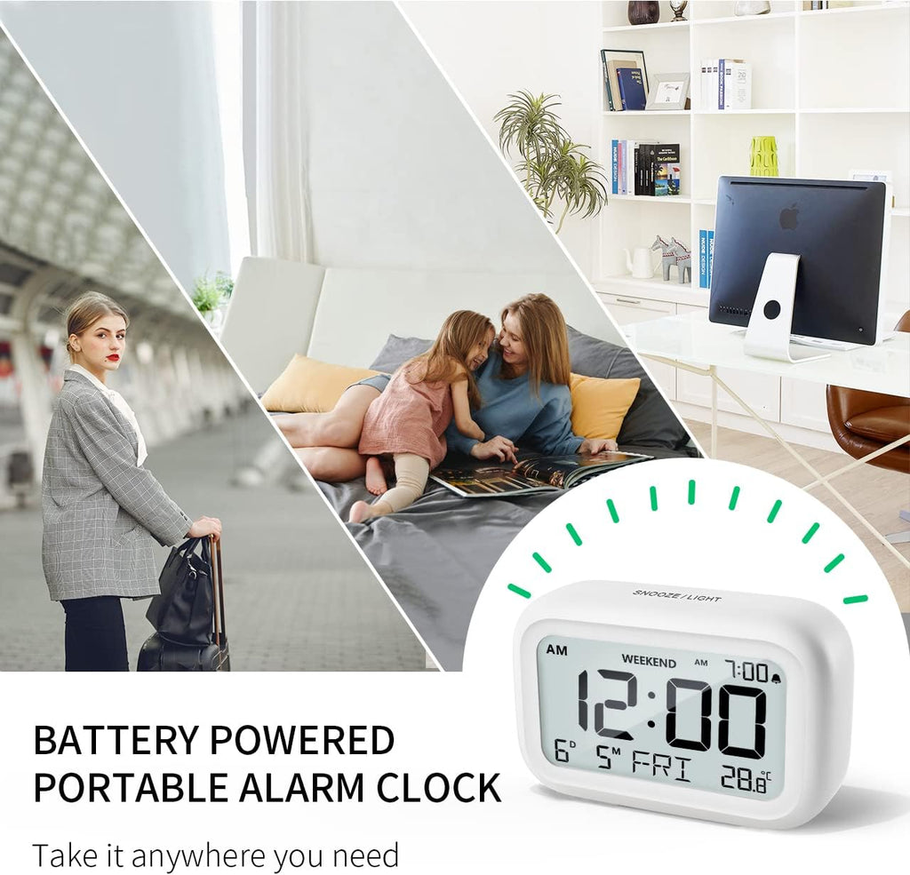 This clock comes with adjustable alarm volume, a snooze function, and a weekend mode, making it perfect for maintaining a consistent schedule during weekdays while allowing extra rest on weekends. Its battery-powered design ensures portability and reliable operation without requiring a power outlet, making it ideal for travel or areas without easy access to electricity.
