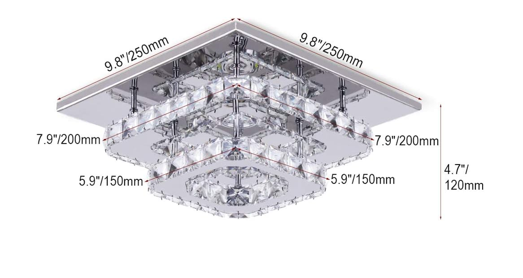 Transform your space with this stunning K9 crystal LED ceiling light, combining modern elegance with high performance. The stainless steel frame ensures durability, while the flush mount square chandelier design makes it a perfect centerpiece for living rooms, bedrooms, and dining areas. The 4500-6000K cool white light creates a bright and welcoming atmosphere.