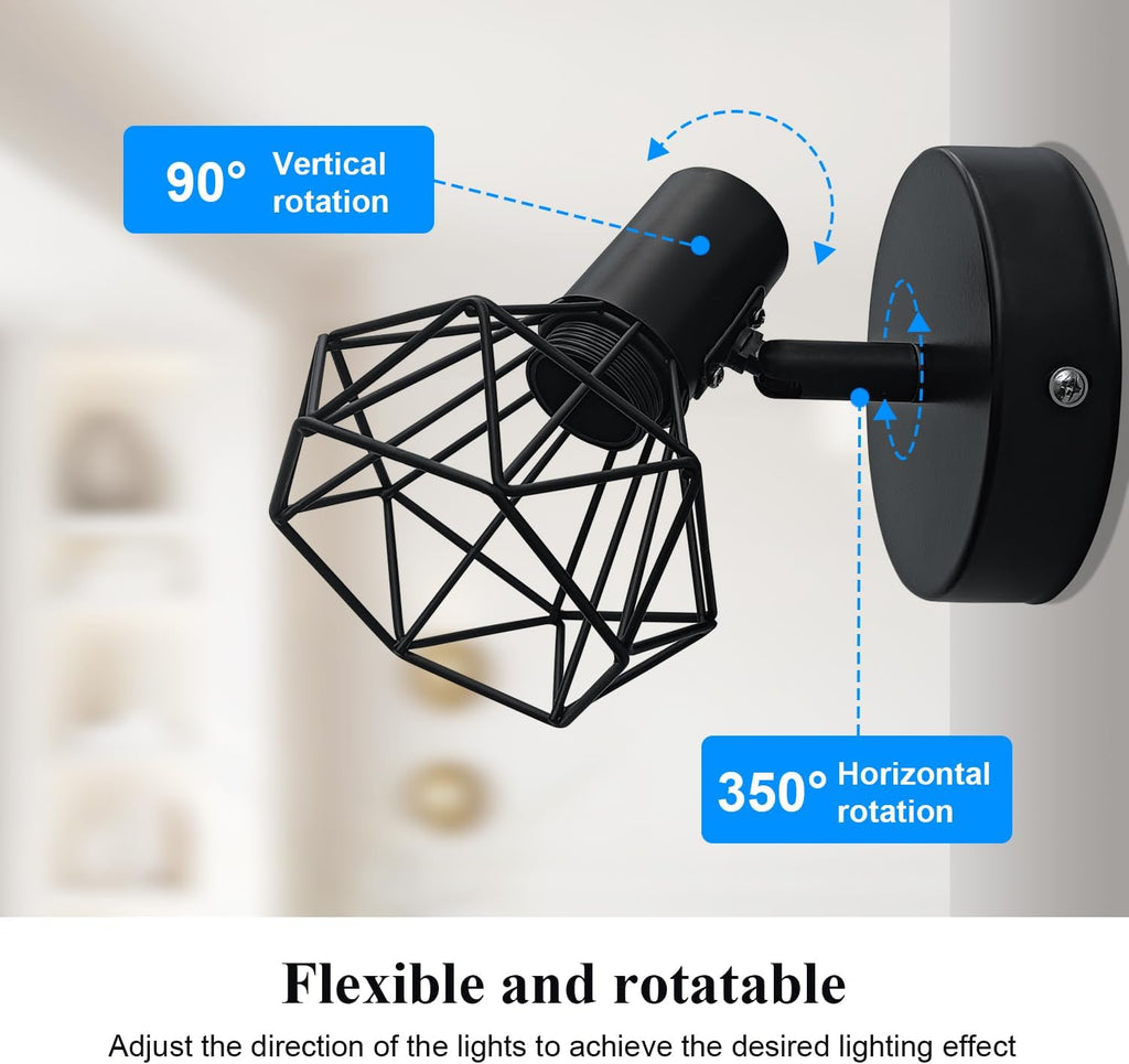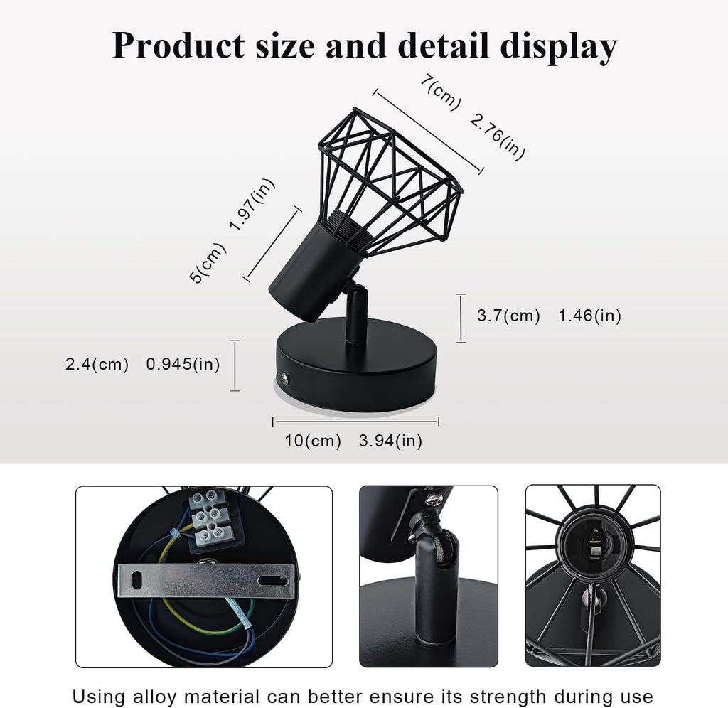 Enhance your home’s lighting and vintage charm with this adjustable E14 wall or ceiling spotlight. Featuring a rotatable metal cage shade and sturdy retro-style construction, this fixture offers both directional lighting and classic appeal. Ideal for kitchens, living rooms, bedrooms, or hallways, it's versatile, durable, and easy to install. Bulb not included.