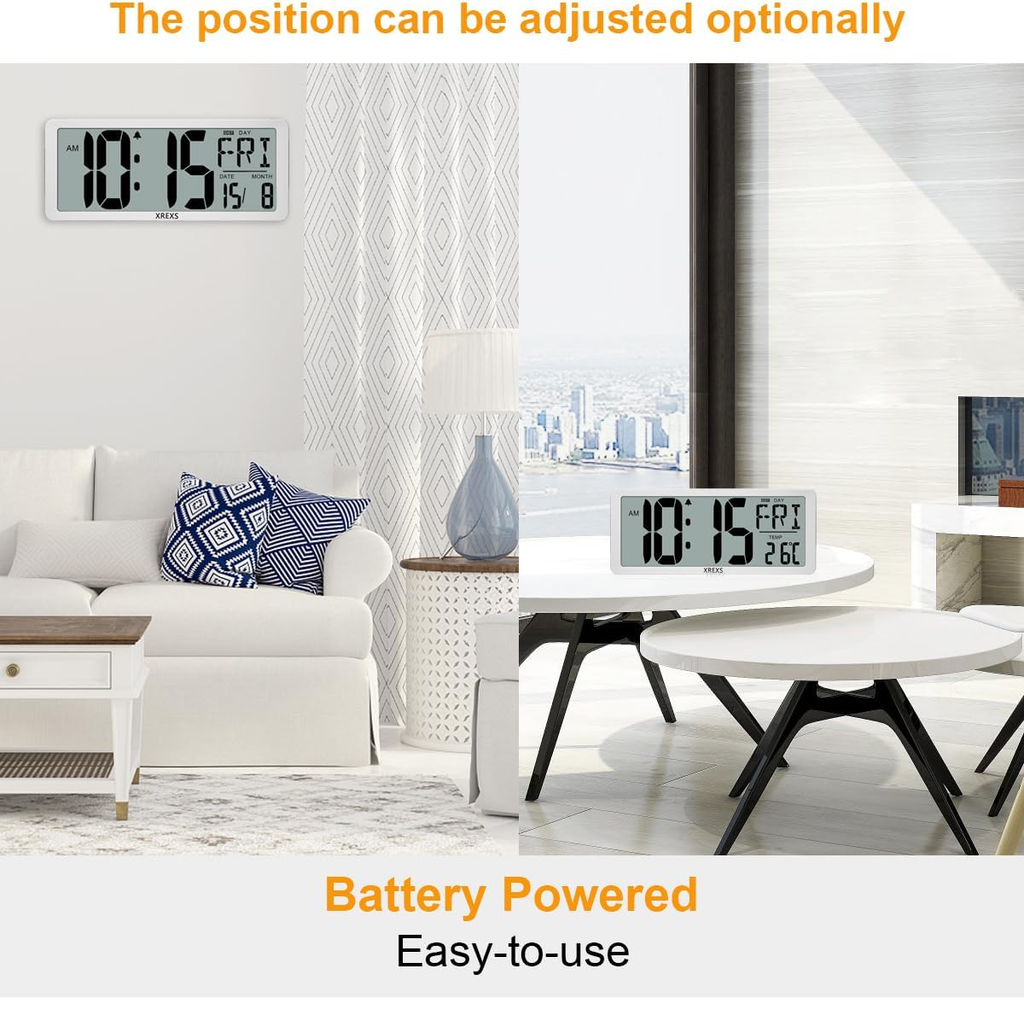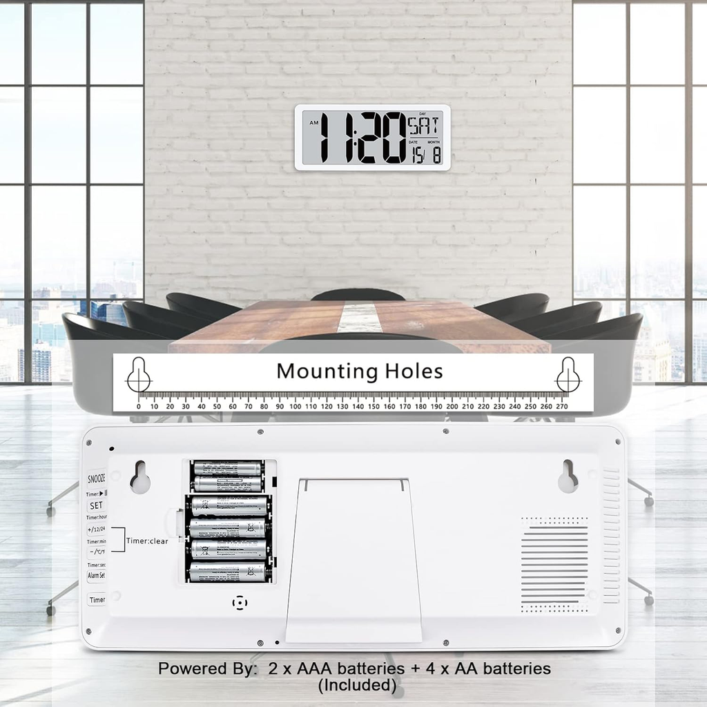 Enhance your space with this Digital Wall Clock, featuring an extra-large LCD display that clearly shows the time, date, and temperature — easily visible from across any room. Designed for both home and office use, it adds a modern touch while offering practicality and precision.