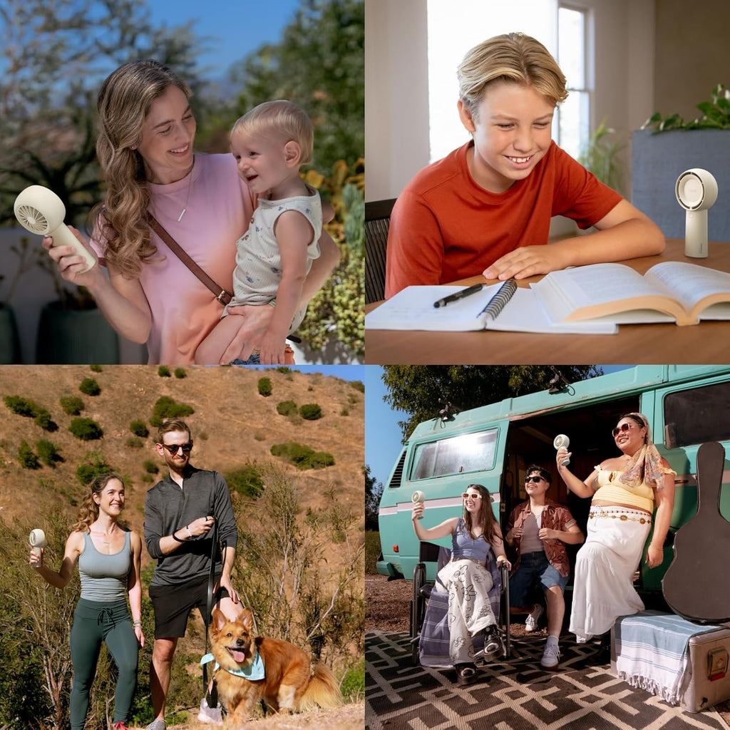 Our portable turbo handheld fan, 4000mAh rechargeable battery, 5-speed airflow, USB charging, and handheld desktop dual-use design delivers powerful and energy-efficient cooling for travel, outdoor activities, home, and office use. Featuring patented Air Turbo and Air Jet technology, this fan accelerates and compresses airflow for a stronger, more natural wind experience while maintaining low noise operation. The high-performance motor reaches up to 6100 r/min with optimized air duct design for enhanced wind power, and the long-lasting battery provides extended runtime depending on speed settings. Its compact form factor, lanyard support, and anti-slip base allow convenient handheld use outdoors and stable desktop placement indoors.