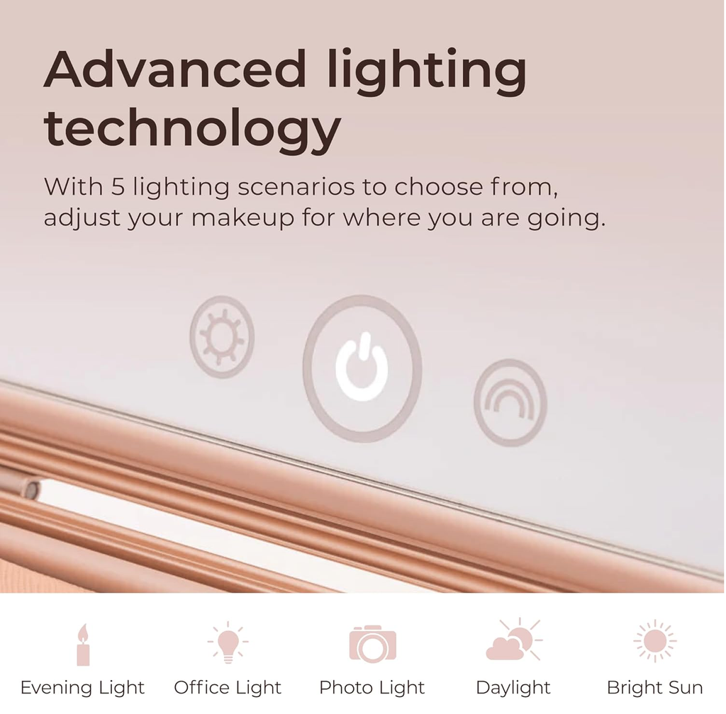 Built-In LED Mirror: Bright, even lighting for makeup anywhere.