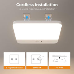 The Motion Sensor Shower Ceiling Light is a compact and stylish lighting solution designed for your bathroom or shower space. This cordless, battery-operated light features adjustable brightness and three color temperature options: warm white (3000K), natural white (4000K), and cool white (6000K). With a motion sensor for hands-free operation, it provides convenience and energy efficiency. The magnetic mounting system ensures easy installation, while its rechargeable 6000mAh battery delivers long-lasting performance.