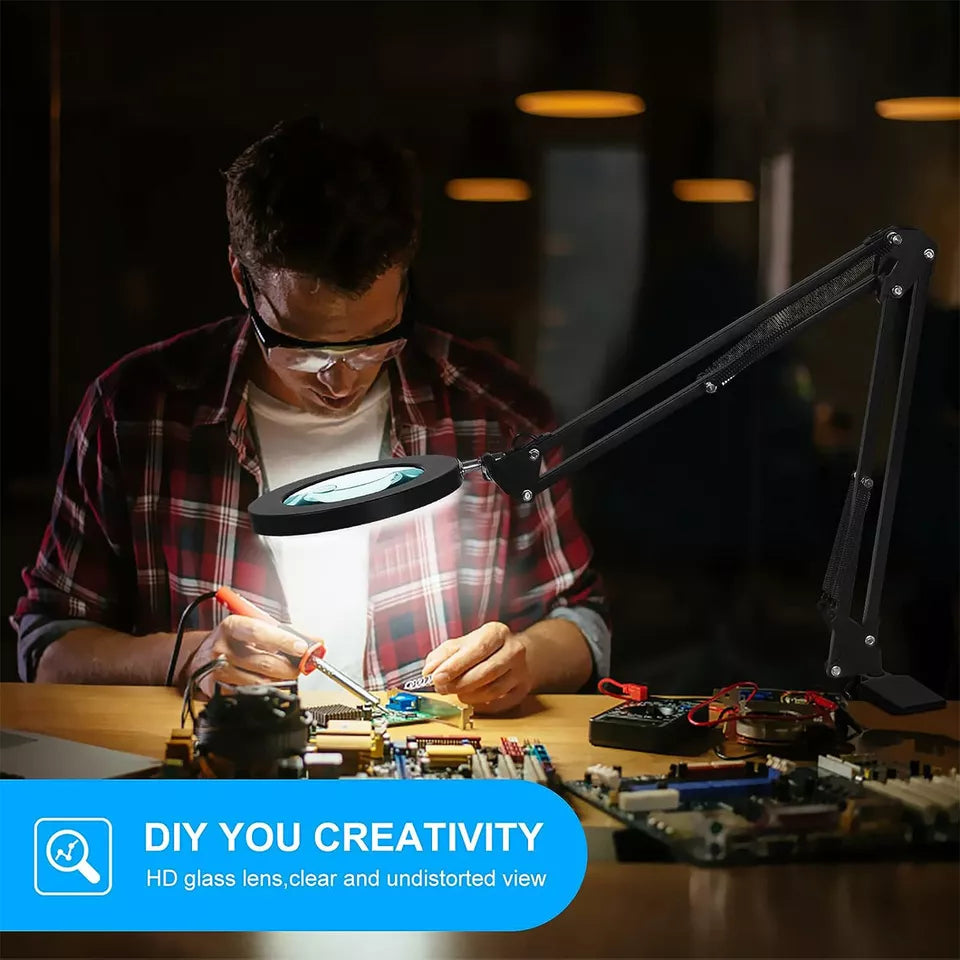 The 10X LED Magnifying Lamp is a must-have for precision work, offering crystal-clear magnification with bright, energy-efficient LED lighting. Designed for hands-free use, this desk lamp features an adjustable gooseneck and a sturdy clamp, making it perfect for reading, crafting, sewing, model building, and electronics repair. The dimmable LED light ensures optimal brightness for any task, reducing eye strain and improving accuracy. Whether for professional use or hobbies, this magnifier lamp is a reliable and versatile tool for enhanced visibility and detailed work.