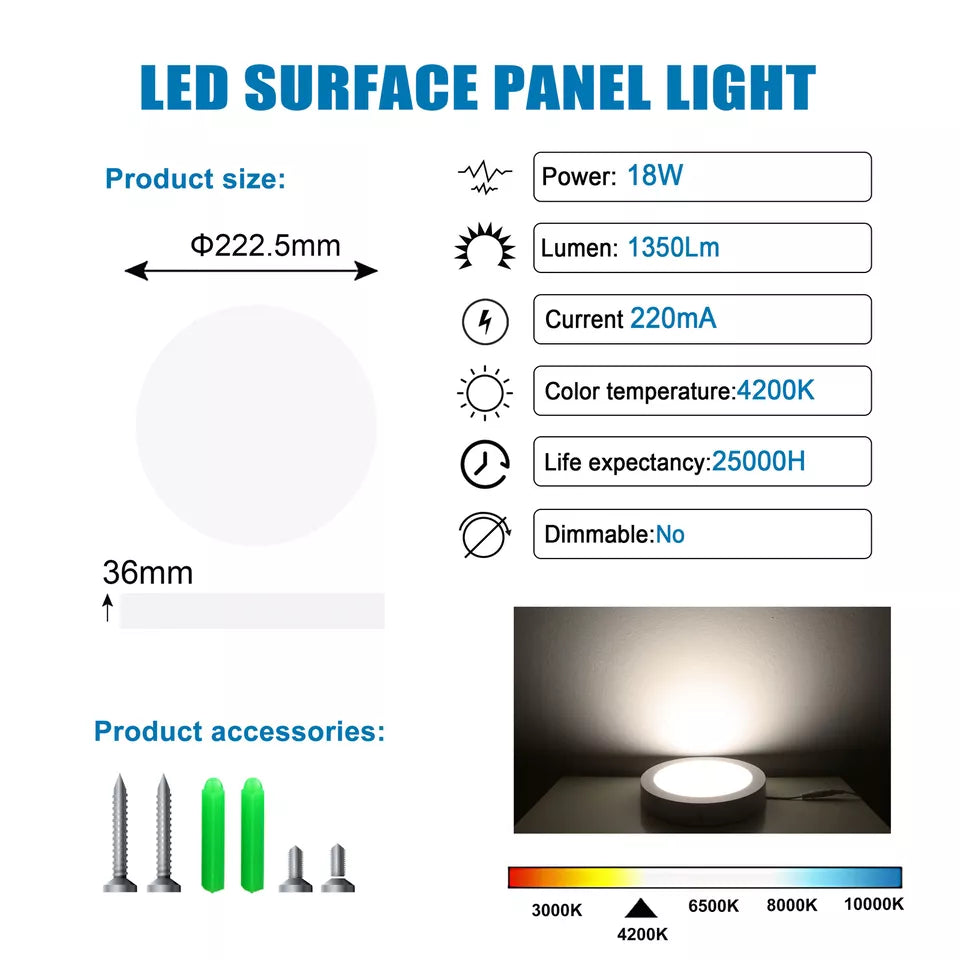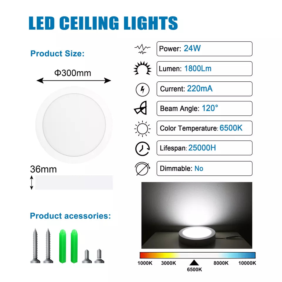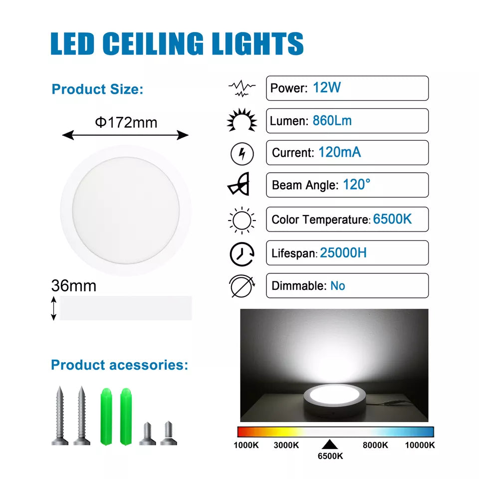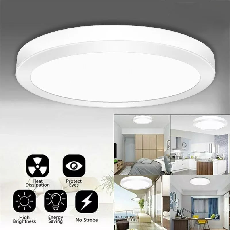 Illuminate your home with this versatile LED Round Ceiling Light Panel, designed to provide bright, energy-efficient lighting with a modern look. Featuring SMD 2835 LED modules with optical lenses, it offers crisp cool white light perfect for any indoor space including bathrooms, kitchens, bedrooms, and living rooms. Available in two sizes (260mm and 480mm diameter) and power options from 10W to 24W, this round ceiling lamp is easy to install and energy-saving with a 2-year manufacturer warranty.