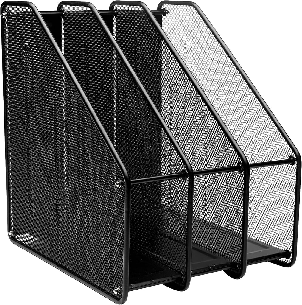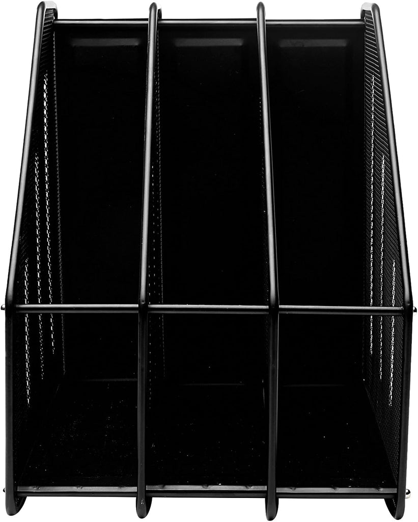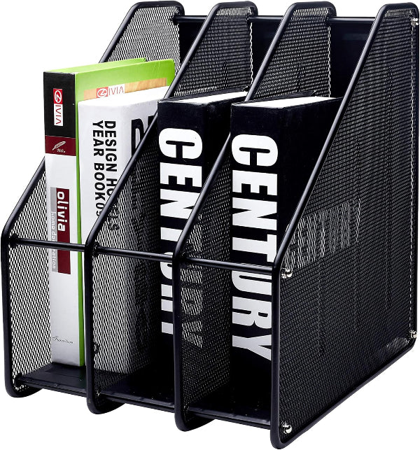 Keep your workspace neat and organised with this Mesh Metal Triple Magazine Holder. Designed with three spacious vertical compartments, it provides an efficient way to store and access your documents, folders, notebooks, and magazines. The sturdy mesh metal construction ensures durability and long-lasting use, while its sleek black finish adds a modern touch to any office, home, or school environment. This vertical file organiser helps you make the most of your desk space, keeping important papers within easy reach while maintaining a tidy and professional look. Perfect for sorting mail, paperwork, catalogues, and more, it’s a must-have for anyone who values both functionality and style.