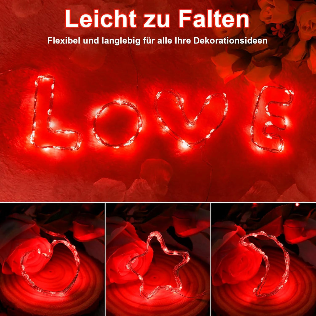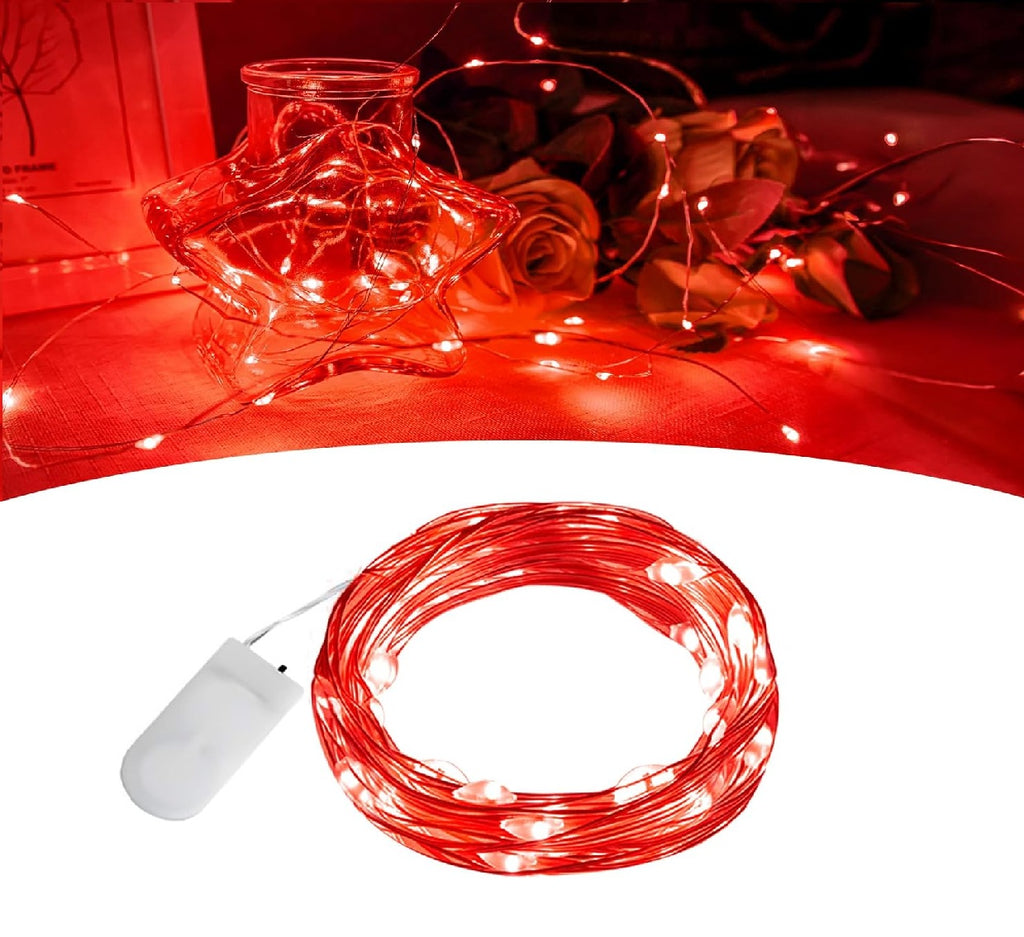 These 2M (6.6ft) mini red fairy lights feature 20 LED bulbs on a copper wire, making them a perfect addition for parties, Valentine's Day, weddings, or any celebration that requires a pop of vibrant red. Powered by batteries, these lights are easy to set up in any location, creating a festive atmosphere with minimal effort.