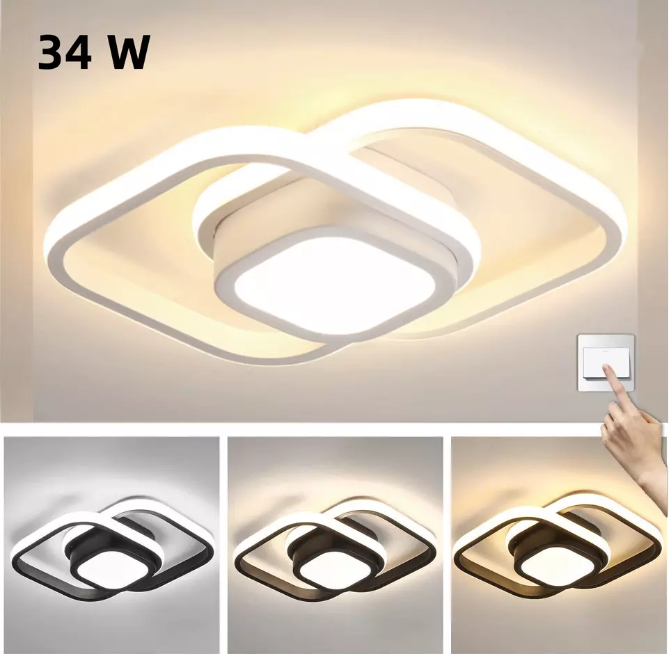 The Chic LED Lamp Ceiling Light Modern Chandelier is an innovative and stylish lighting solution for your living room, bedroom, or any other area of your home or office. With a sleek, modern design and advanced features, this ceiling light blends seamlessly with any decor style, adding elegance and functionality to your space.Crafted with high-quality aluminum and acrylic materials, this ceiling light features energy-efficient LED chips that provide bright, even illumination while consuming minimal energy. The unique design includes dimmable lighting in three color temperatures—Cool White, Warm White, and Natural White—that can be adjusted with a standard wall switch