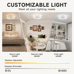 Experience the perfect blend of comfort and style with the BreezeGlow Elite Smart Ceiling Fan. This 50cm modern ceiling fan features a built-in LED light with adjustable color temperatures (3000K-6500K) and dimmable brightness, allowing you to create the ideal ambiance for any occasion. With six speed settings and ultra-quiet operation, it ensures optimal airflow without disrupting your peace. The included remote control makes it easy to adjust settings from anywhere in the room. Perfect for bedrooms, living rooms, and dining rooms, this fan combines functionality with sleek, contemporary design.