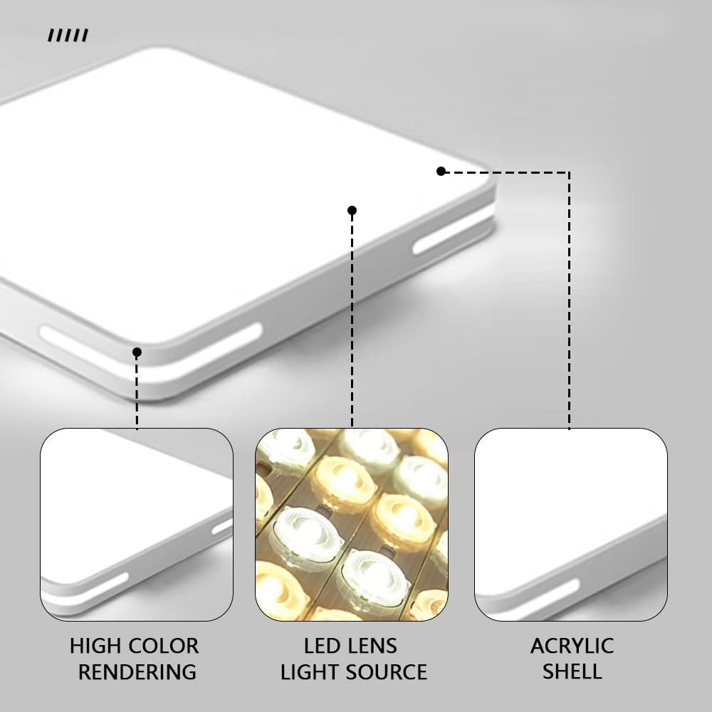 Elevate your interiors with the Modern Square Flush Ceiling Lights, designed with a slim, flat profile and a durable high-temperature iron lacquer body. This fixture offers a crisp 6500K cool white light ideal for kitchens, bathrooms, hallways, and children's rooms. Its environmentally friendly build and long lifespan make it a perfect fit for both home and light commercial settings.