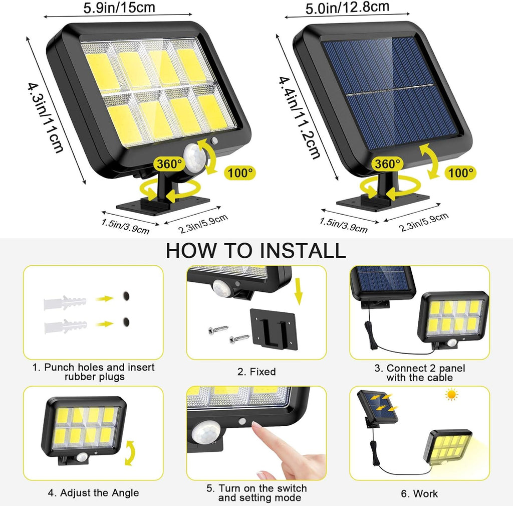 Upgrade your outdoor spaces with the sleek, ultra-bright Motion Sensor Outdoor Wall Lights. Featuring a slim, flat design and separate solar panel, this unit delivers powerful white illumination using 160 COB LED beads. With a cool color temperature ideal for gardens, patios, driveways, and commercial entries, it blends modern design with exceptional functionality for any exterior lighting need.