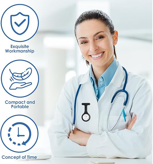 The clear analog dial with luminous hands ensures easy readability even in low-light hospital environments. Built with durable materials and reliable quartz movement, this fob watch provides accurate timekeeping throughout long shifts.