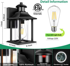 The Outdoor Motion Sensor Glass Lamp combines sleek modern design with practical functionality. Featuring a high-grade aluminum frame and an anti-rust coating, this lamp is built to withstand the elements while adding an elegant touch to any outdoor space. The included E26 energy-efficient bulb works seamlessly with the built-in PIR motion sensor, ensuring your entryway, garden, or backyard remains lit when needed most. With a waterproof IP65 rating, it’s suitable for all weather conditions.
