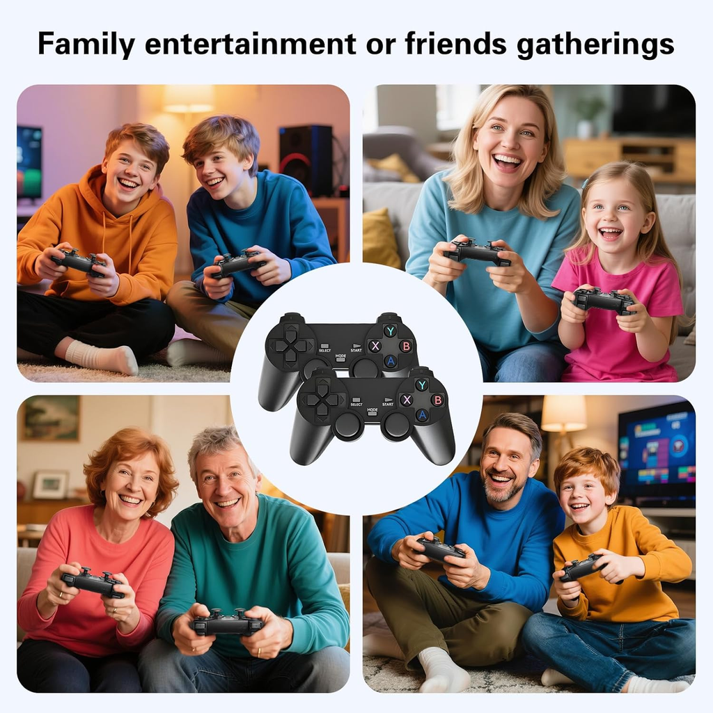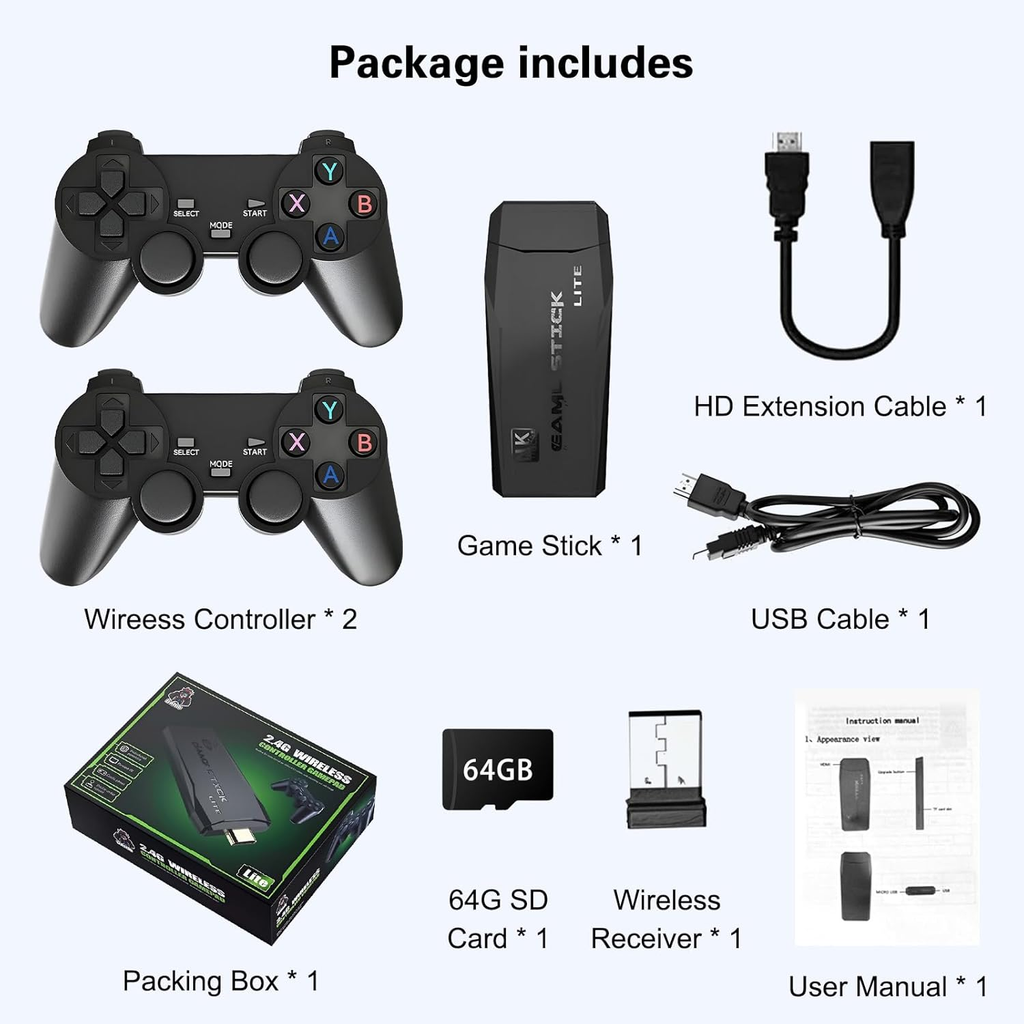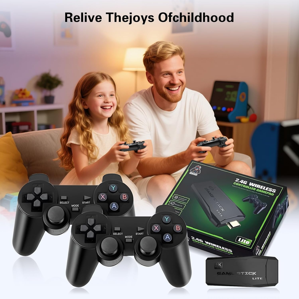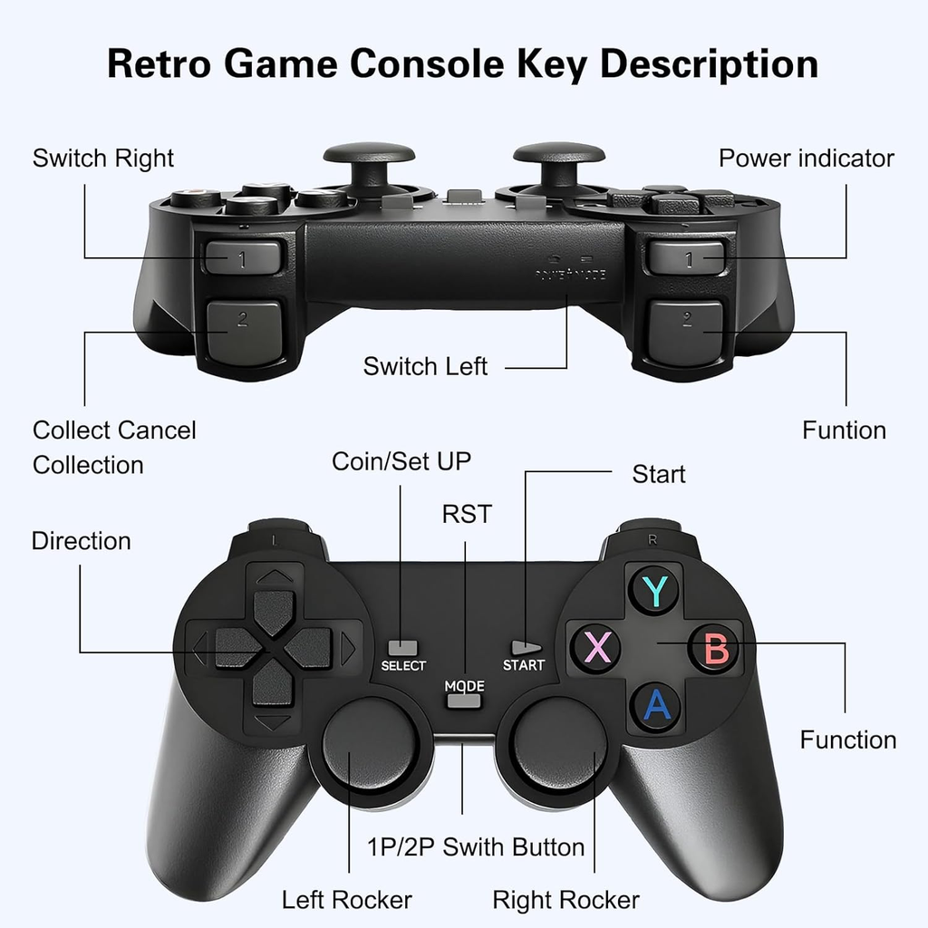 Simply plug the HDMI adapter into your TV, connect the included 2.4G wireless controllers, and start playing instantly—no downloads or setup required. The console supports 4K HD output, delivering crisp visuals and smooth performance for an authentic yet modern gaming experience.