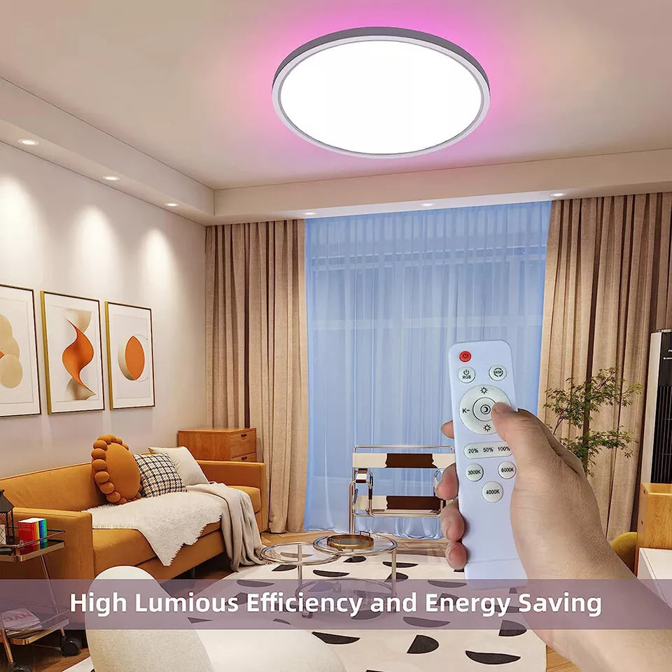 Elevate the ambiance of any room with the RGB Ceiling Light with Adjustable Backlighting, designed to offer a modern lighting solution that combines style, functionality, and versatility. With an impressive 3200LM brightness, this ceiling light provides powerful, energy-efficient illumination, perfect for both large and small spaces. The dimmable feature allows you to adjust the brightness to your desired level, ensuring that you always have the perfect lighting for any activity, whether it's reading, working, or relaxing.