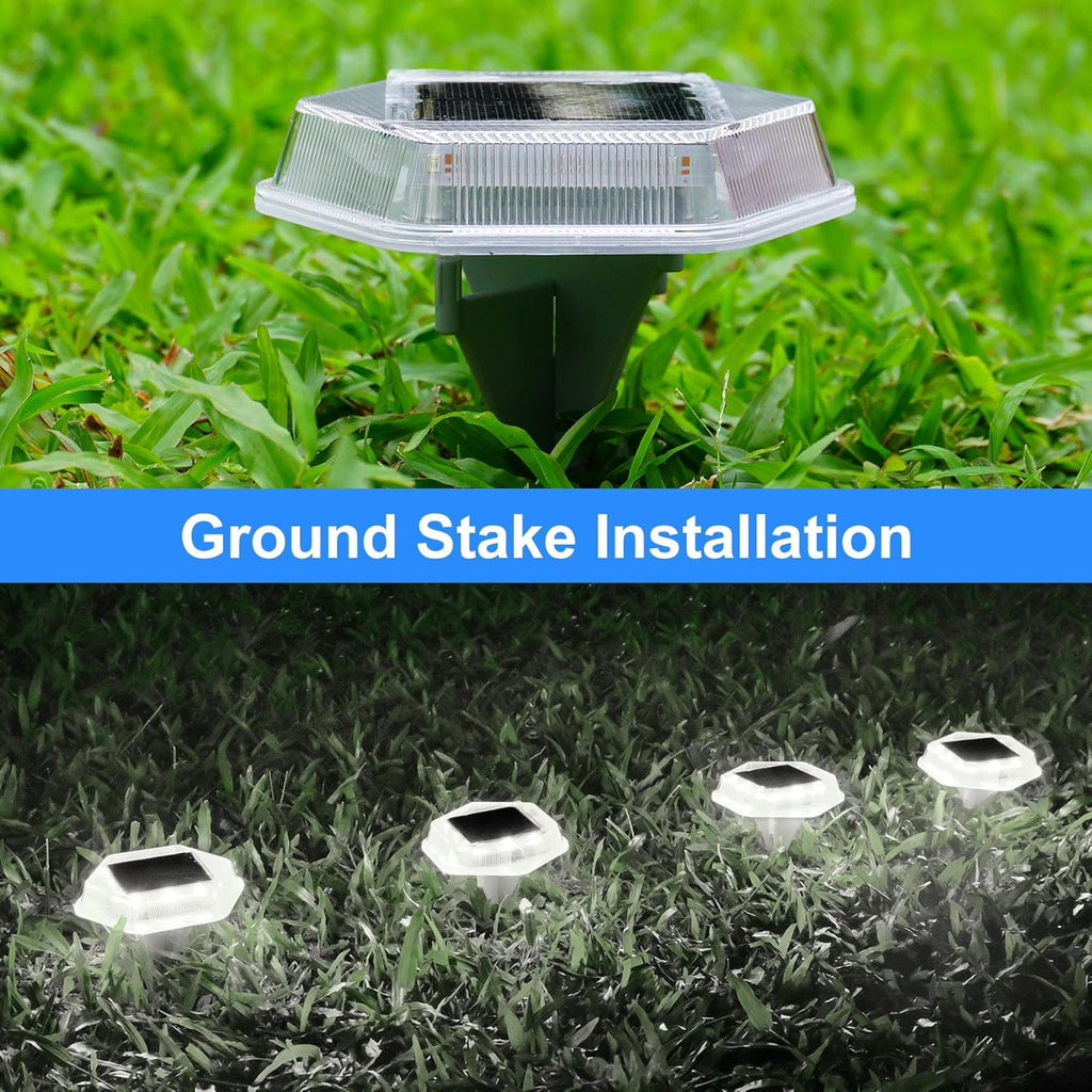 Enhance your outdoor spaces with the Solar Deck Lights (4 Pack) – designed to provide safe, stylish, and eco-friendly illumination for gardens, patios, pathways, fences, poolside areas, and sidewalks. With a cool white LED light, these disk-shaped solar lights create a clear, modern glow perfect for highlighting plants, landscaping, and building features.