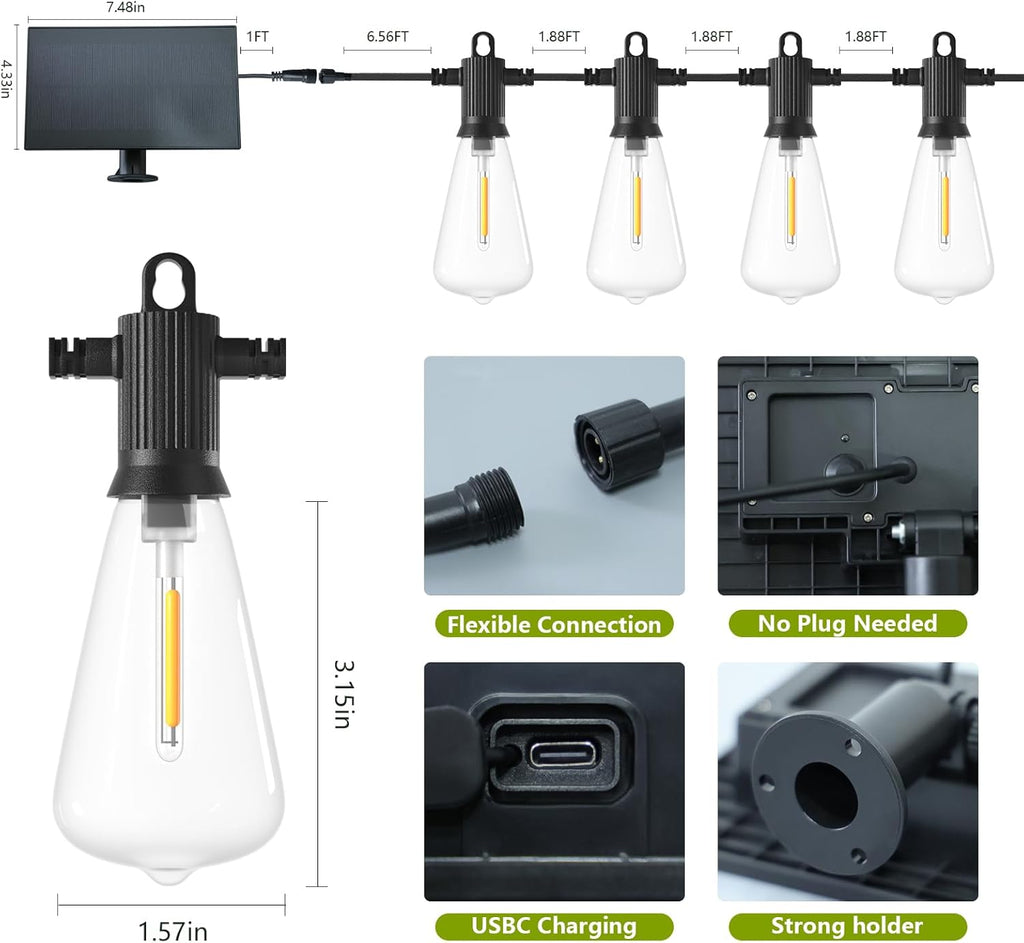Brighten your outdoor areas with the 15M Solar Festoon String Lights, featuring waterproof LED bulbs. These solar-powered lights are perfect for gardens, patios, and parties, offering an eco-friendly lighting solution with easy installation.