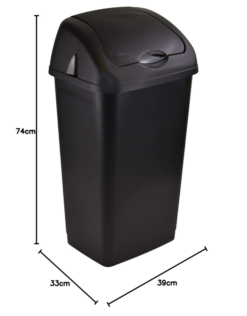 The Sterling Ventures 60L Premium Plastic Swing Bin is a stylish and functional waste disposal solution for both home and kitchen use. With its generous 60-litre capacity, it is ideal for handling household rubbish, making it suitable for larger families and busy kitchens. The swing-top lid design allows for easy, hands-free disposal while keeping unpleasant odours sealed inside. Made from durable, high-quality plastic, this bin is built to last and easy to wipe clean, ensuring long-term hygiene. Its sleek black finish complements modern and traditional interiors alike, making it both practical and visually appealing.