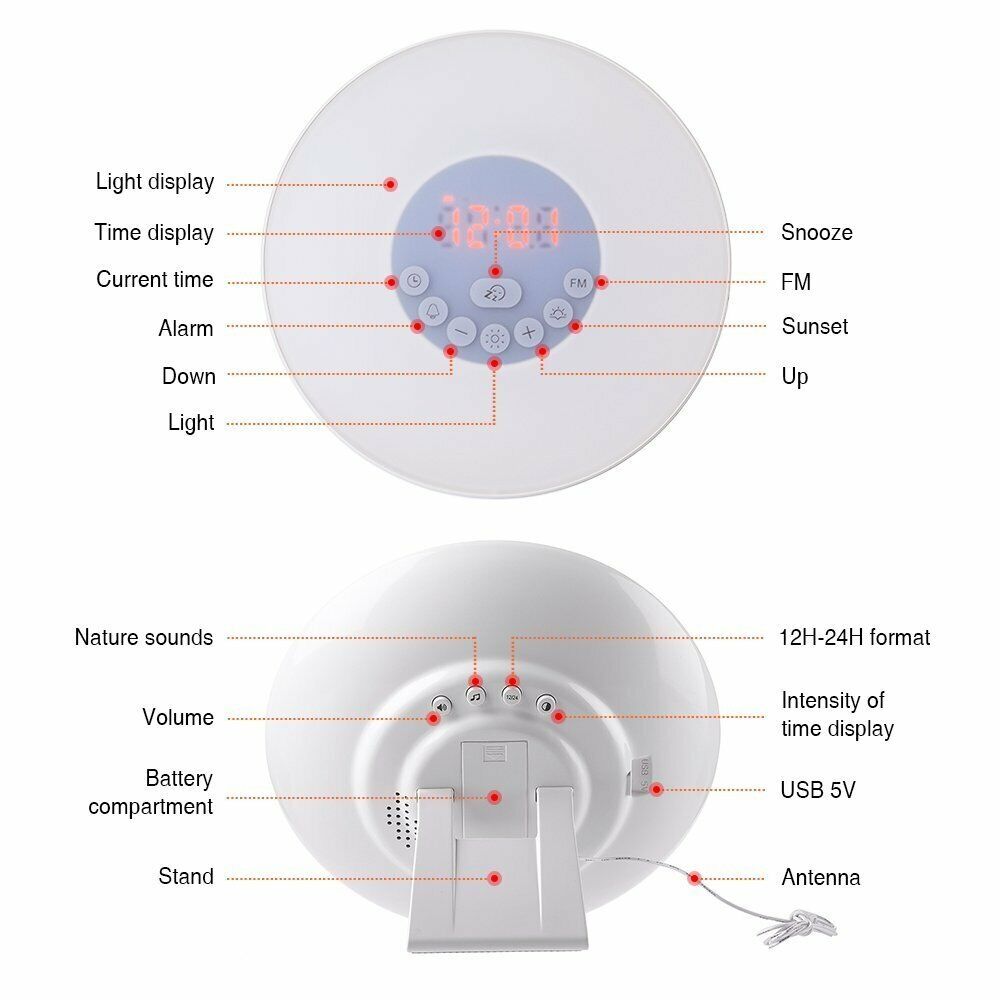 The Sunrise Wake-up Alarm works by gradually increasing the light in your room, simulating a natural sunrise. You can set the alarm to go off at a specific time, and the light will gradually increase over a set period of time until it reaches the desired level of brightness.![]()