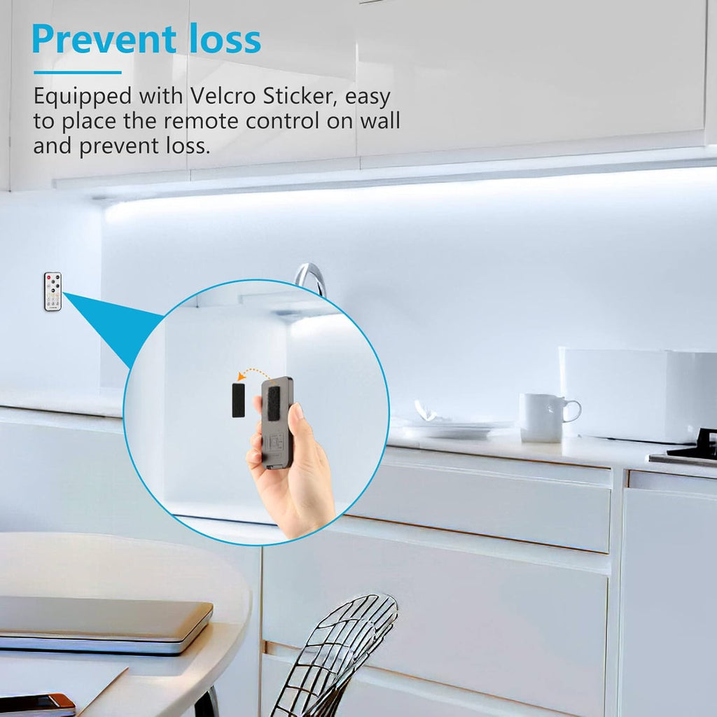 The easy DIY installation allows you to stick the light strip onto clean surfaces using the provided double-sided tape and extension plugs. With the RF remote control, you can conveniently manage brightness, power, and lighting modes from a distance, ensuring greater flexibility than traditional remotes. Reliable, versatile, and minimal in style, this LED strip light is a practical solution for under-cabinet lighting, display backlighting, workbench illumination, and more.