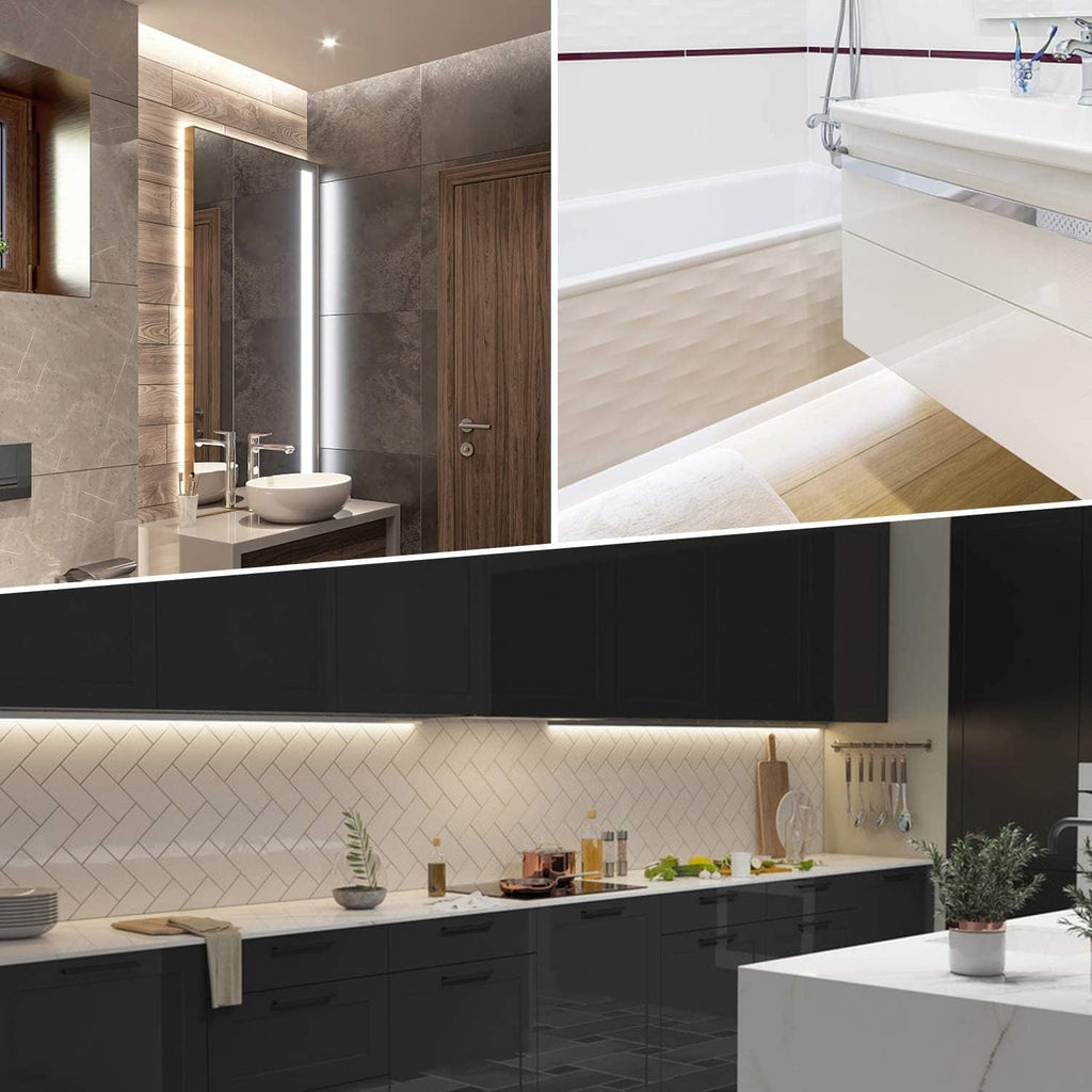 Enhance your home lighting with this Under Cabinet LED Strip Lights Kit, designed for bright, energy-efficient illumination in kitchens, shelves, cupboards, desks, and more. Measuring 9.8ft/3m, this flexible strip light delivers cold white 6500K brightness, ideal for modern and functional spaces. Powered by a 12V UK plug, the strip consumes just 12W while offering adjustable brightness levels for the perfect atmosphere.