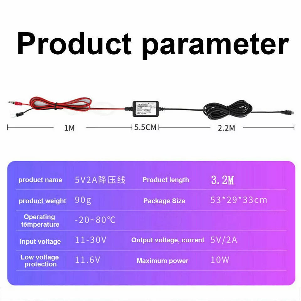 The Universal Car Dash Cam Hardwire Kit is a premium power solution designed to keep your dash camera running efficiently without relying on your vehicle's cigarette lighter socket. With 12V-24V input and 5V 3A output, this hardwire kit is compatible with a wide range of dash cams, GPS devices, and other mini USB-powered electronics. Whether you need continuous power for parking mode recording or simply want a cleaner installation without messy cables, this kit provides a safe, efficient, and reliable connection to your vehicle’s electrical system.