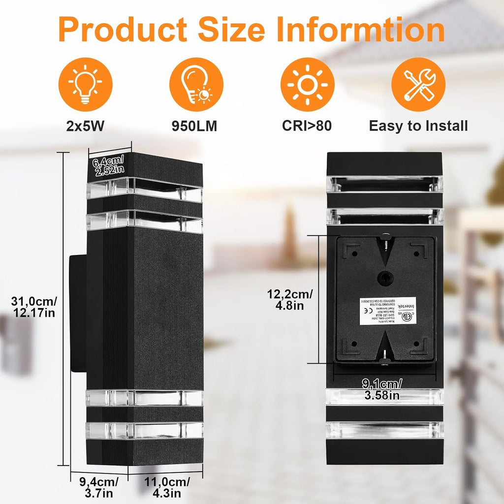 The Up Down Porch Light for Front Door offers a clean and modern lighting solution designed to enhance your entryway. Featuring an up-and-down lighting design, this light illuminates your front door with style. With a sleek black finish and durable construction, this porch light is perfect for outdoor use and adds a contemporary touch to your home’s exterior. The GU10 socket allows for bulb customization, giving you control over your desired light intensity.