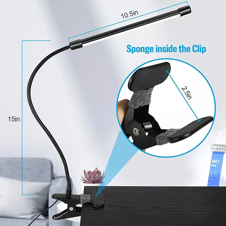 Strong Clip-On Clamp – The sturdy clip attaches securely to desks, headboards, nightstands, or bookshelves, saving space and providing hands-free lighting.