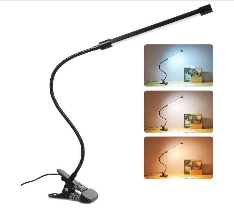 The Adjustable USB Clamp Lamp is a versatile and dimmable LED light designed for desk, bed, and study use. Featuring a flexible gooseneck design, this clip-on lamp allows you to adjust the angle and brightness to suit your needs, whether for reading, working, or relaxing. The USB-powered design makes it convenient to use with a laptop, power bank, or adapter, ensuring energy-efficient and eye-friendly illumination. Perfect for home, office, or bedside tables, this compact and portable LED clamp lamp enhances your workspace with modern lighting technology.
