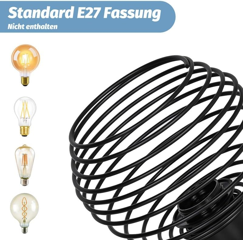 E27 Bulb Compatibility: Fits standard E27 base bulbs — LED, Edison, or filament styles (not included).