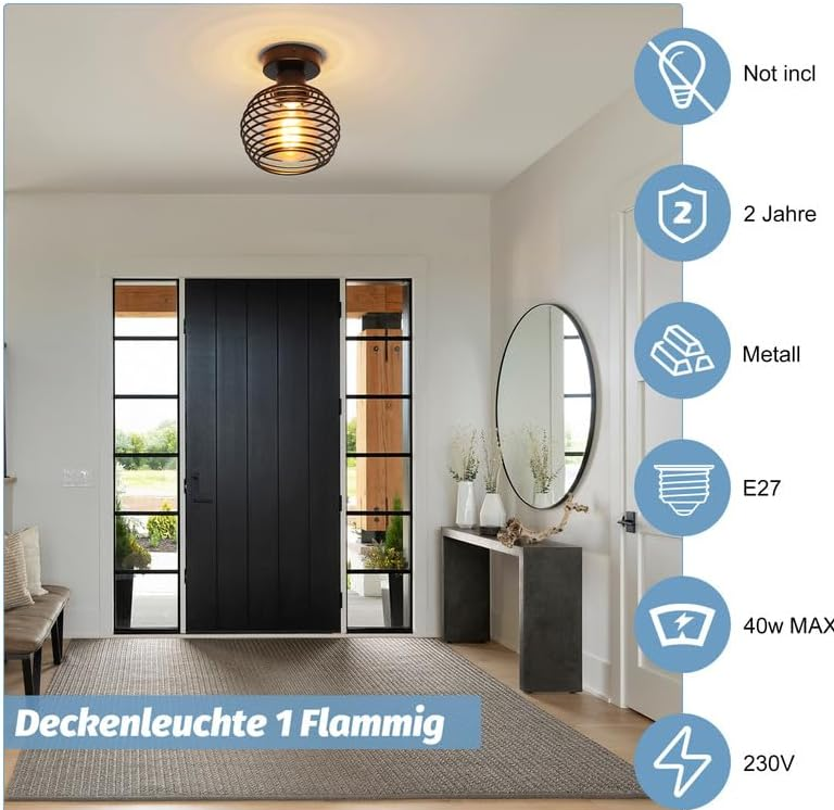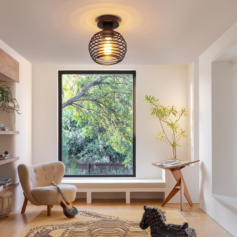 Add timeless character and industrial charm to your space with this Vintage Black Ceiling Light Fixture. Designed with a semi flush mount metal cage, it combines rustic style with modern simplicity — perfect for hallways, bedrooms, kitchens, and living areas.